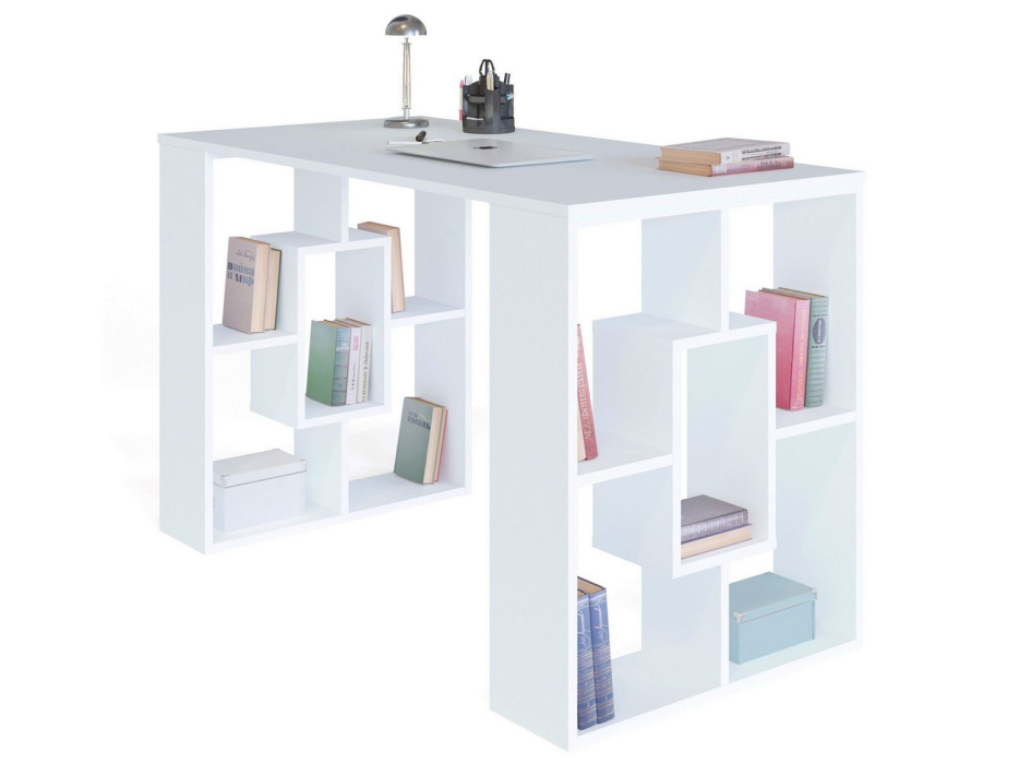 Стильный прямой письменный стол понравится всем любителям минималистичных светлых деталей в интерьере. Создавая эту модель, дизайнеры отошли от привычного оформления письменно стола и сделали его ножки функциональными — в виде стеллажей. Больше не нужно подбирать громоздкие тумбы, на столе достаточно места для ноутбука и нужных в работе материалов, а на его опорах — для книг, канцелярии и любимых предметов для настроения.