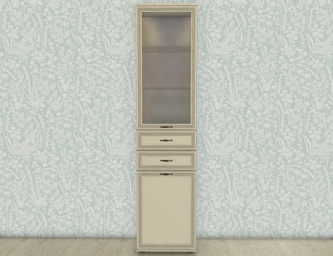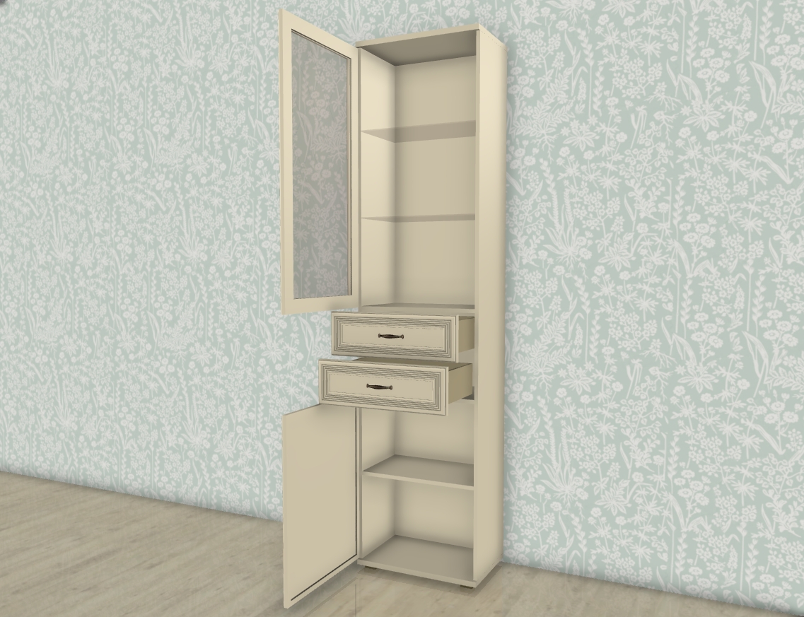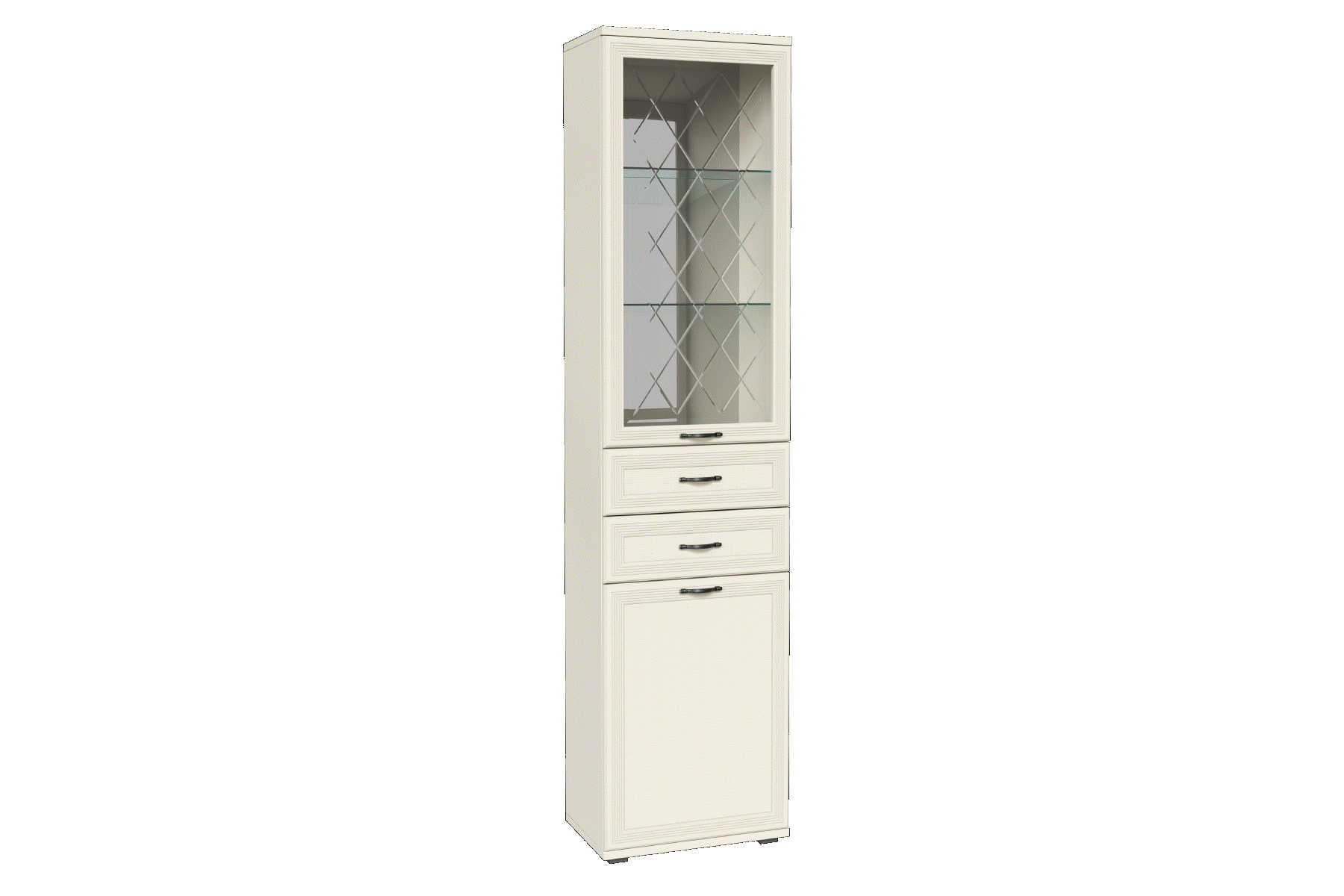 МС Карина шкаф-пенал ШК-1047 прямой с 2 ящиками, со стеклом и стеклянными полками.