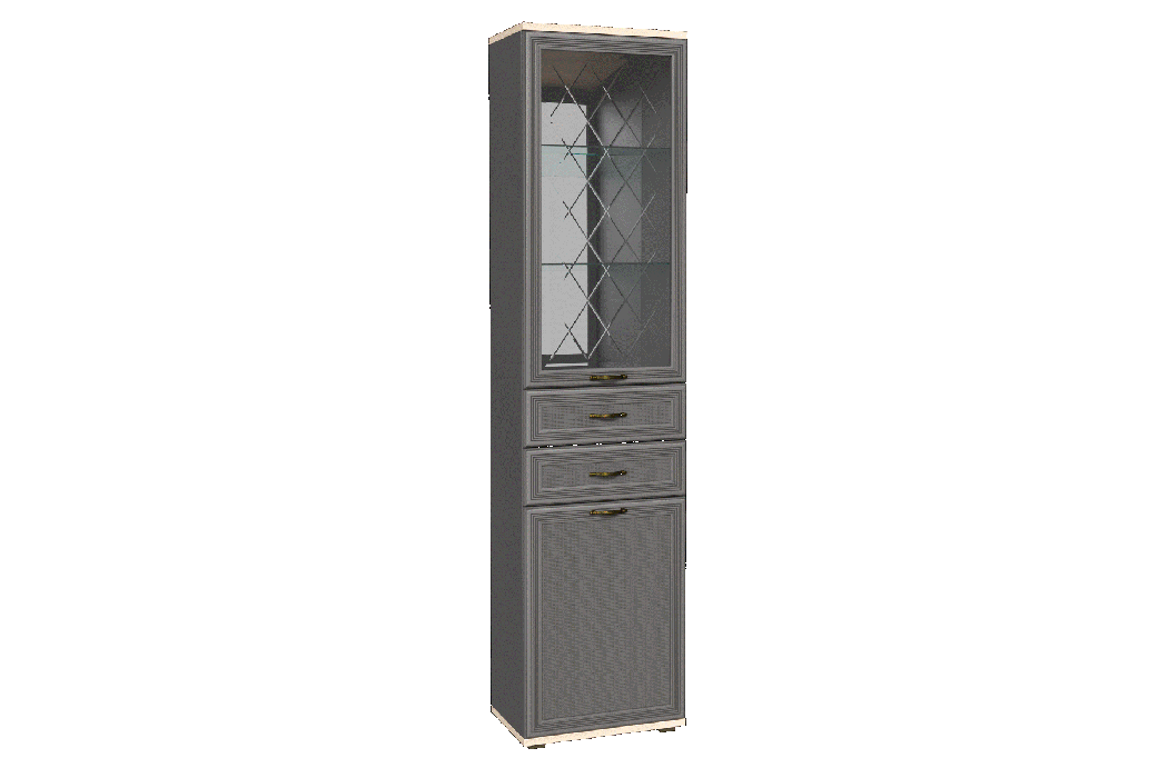 МС Карина шкаф-пенал ШК-1047 прямой с 2 ящиками, со стеклом и стеклянными полками.