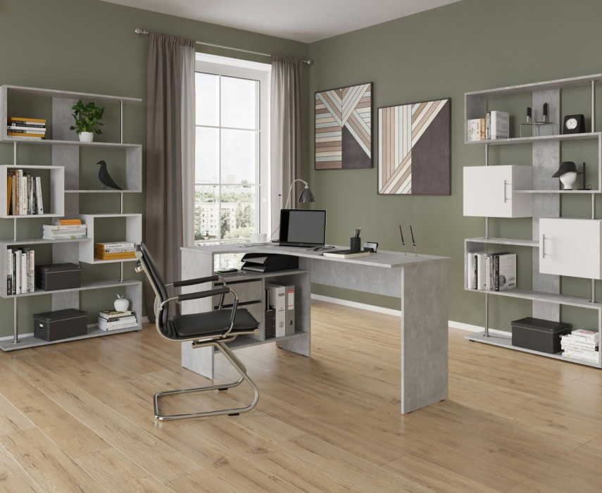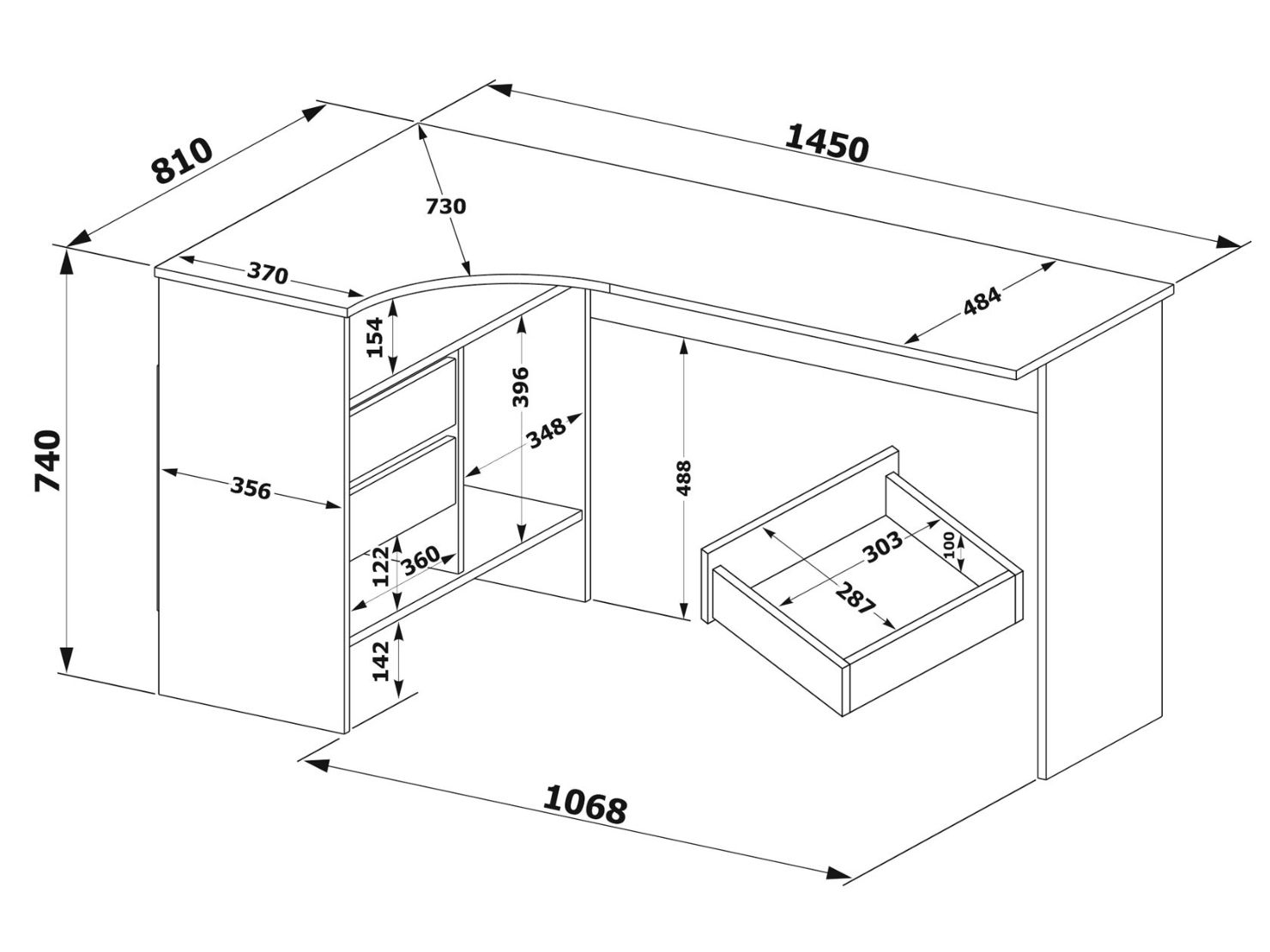 Угловой письменный стол СПм-25 — идеально решение для обустройства полноценного рабочего места в домашнем кабинете или офисе. На широкой столешнице найдется место для большого монитора, клавиатуры или ноутбука, а также сопутствующей техники. В выдвижных ящиках и открытых отделениях удобно хранить книги и канцелярию. Кроме того, конструкцией предусмотрена ниша под системный блок.