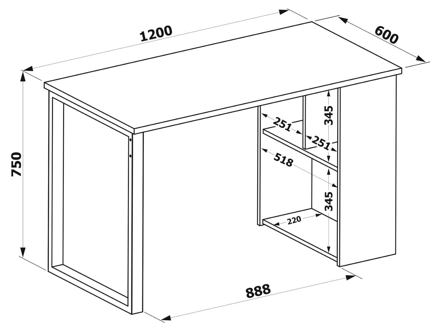 Размер стола: Ш 1200мм, Г 600мм, В 750мм.