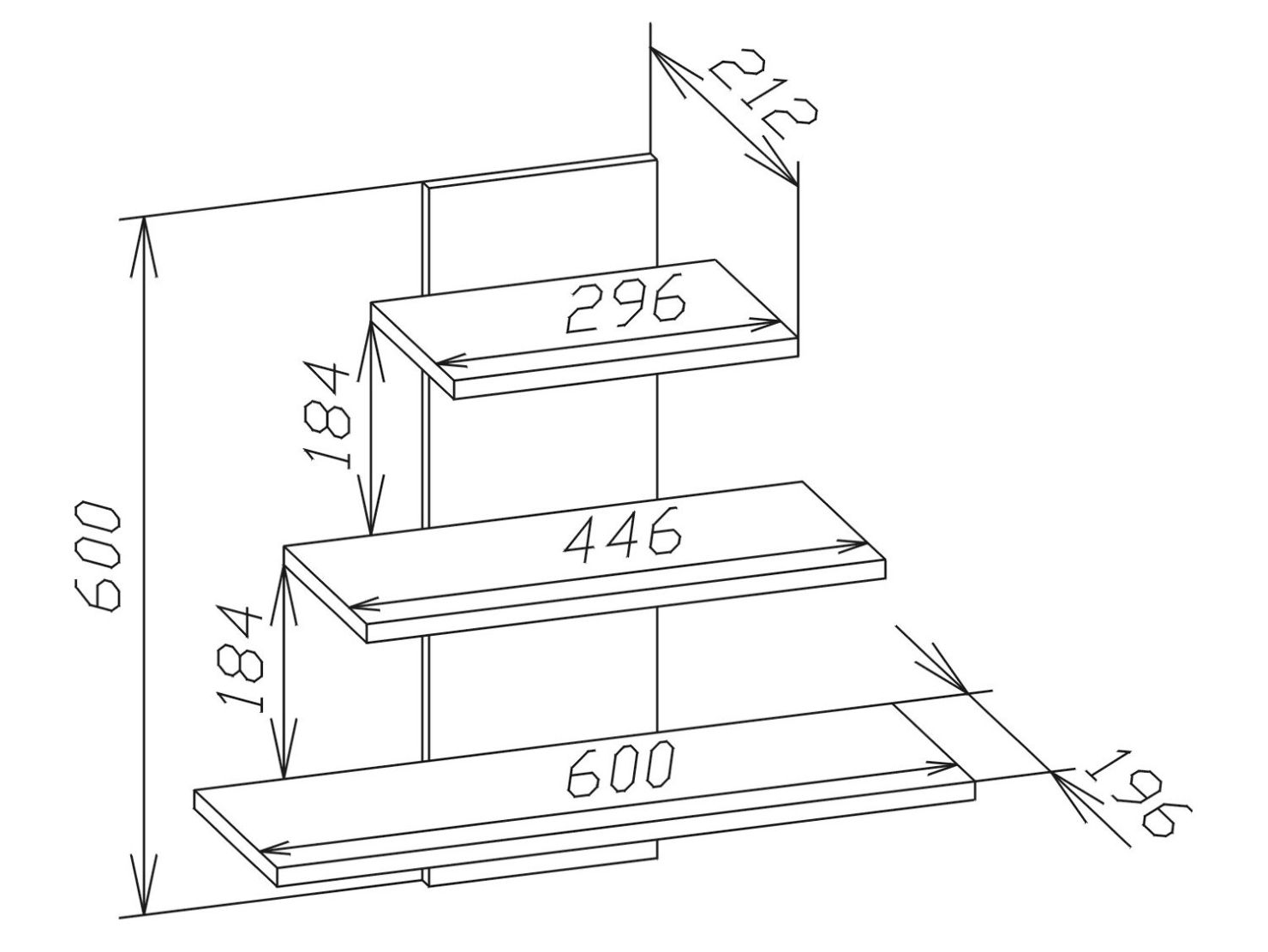 Размер полки: Ш 600мм, Г 212мм, В 600мм.