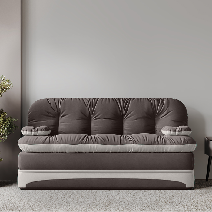 Если вы ищете предмет интерьера, способный стать центром притяжения для всей семьи, то продукция Div-one станет вашим идеальным решением. Представляем вам раскладной диван кровать «Клиффорд Макси» — воплощение современного комфорта и безупречной функциональности. Размещенный в просторной лофт гостиной, он легко позволяет с удобством расположить большую компанию. Перина матрас поможет организовать дополнительное гостевое ложе, когда это необходимо. Трансформация без механизма: а) Достаточно отодвинуть изделие от стены и плавно опустить спинку (200х120см). б) Можно откинуть прямой диван как книжку на пол и получить полноценное двухспальное место для взрослых (200х190см). В разложенном состоянии образуется ровная и прямая поверхность, обеспечивающая ортопедический правильную поддержку тела и гарантирующая полноценный отдых во время сна. Модель без ножек рассчитана на максимальную нагрузку до 200 килограмм, что подтверждает её надежность.