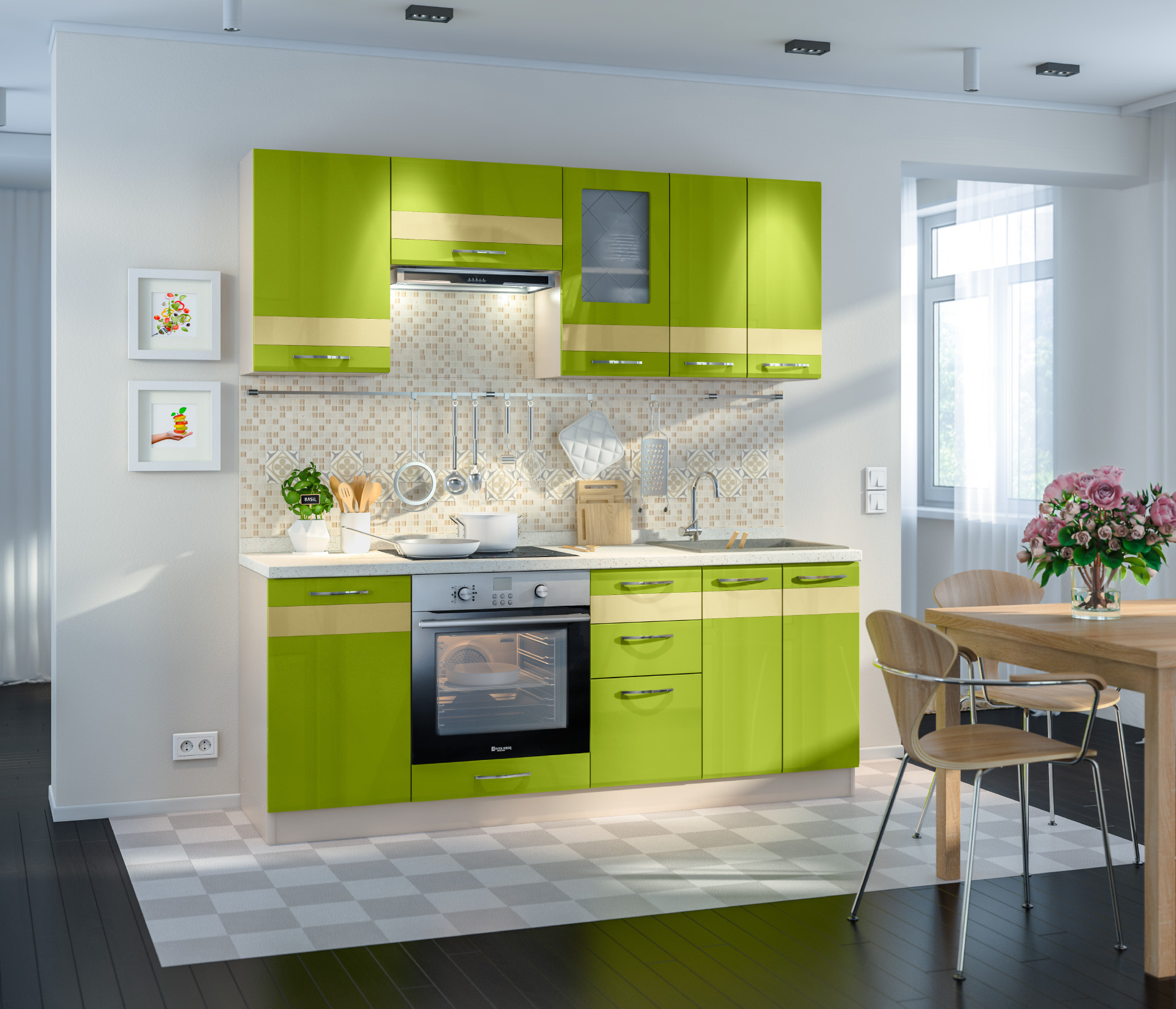 Кухонный гарнитур Регина с глянцевыми фасадами МДФ с выполнена в современном стиле. Кухня оборудована достаточно вместительными ящиками и шкафчикам, в которых с легкостью можно разместить всю кухонную утварь. Материал корпуса ЛДСП цвет Дуб песочный, материал фасада МДФ, покрытый ПВХ пленкой цвет оливковый . К данному комплекту можно дополнительно заказать другие модули, фасады другого цвета и стиля из модульной системы РЕГИНА.