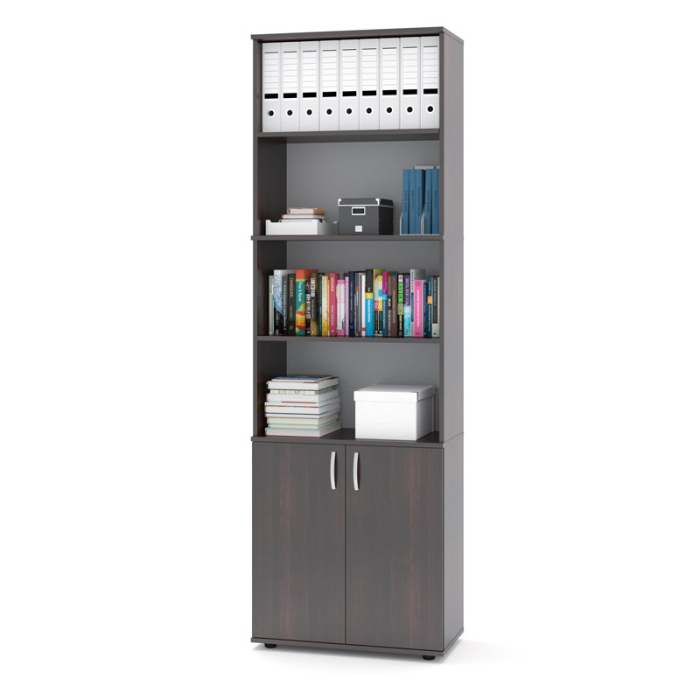 Стеллаж широкий двери снизу ШУ-41 высотой 216 см. с четырьмя открытыми полками сверху для хранения документов, архивов, оргтехники, предметов интерьера.