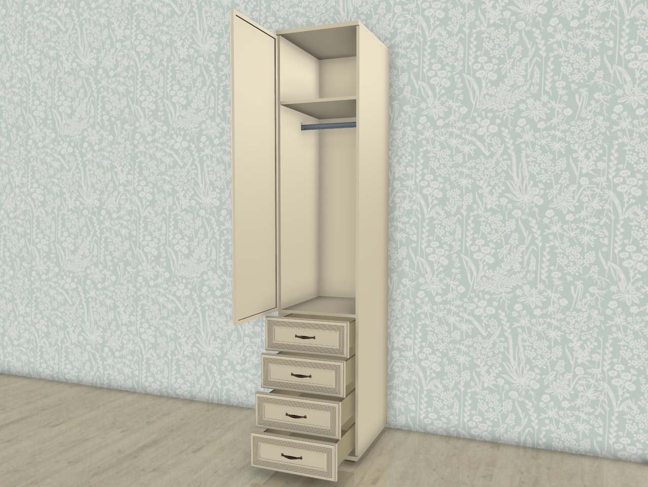 МС Карина шкаф-пенал ШК-1024 прямой с 4 ящиками.