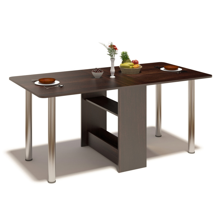 Столешница с закругленными углами. В разложенном состоянии столешница превратиться в стол шириной 1660 мм. В собранном виде ширина стола составляет лишь 320 мм.