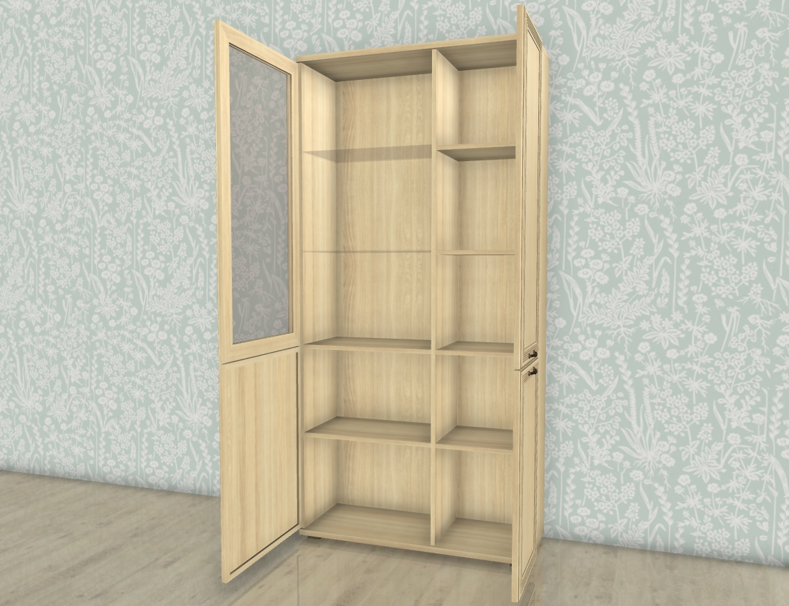 МС Карина шкаф ШК-1072 прямой со стеклом и стеклянными полками
