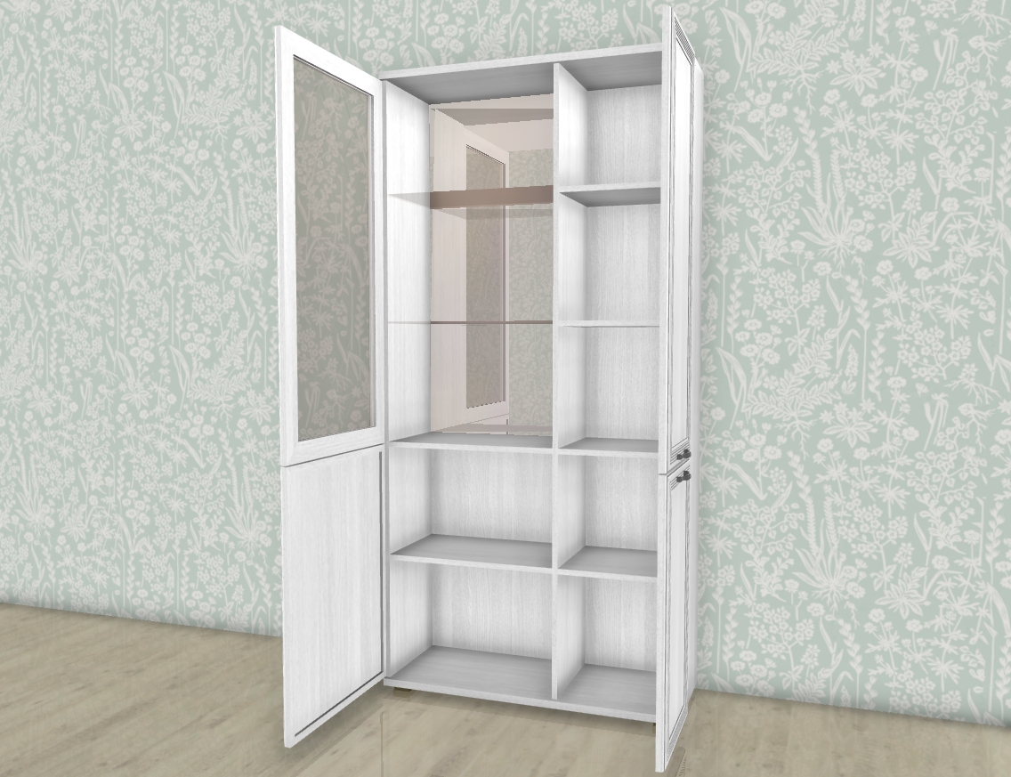 МС Карина шкаф ШК-1072 прямой со стеклом и стеклянными полками