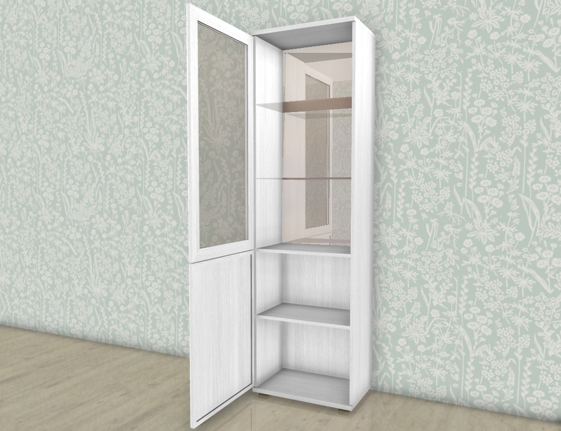 МС Карина шкаф-пенал ШК-1074 прямой со стеклом и стеклянными полками.