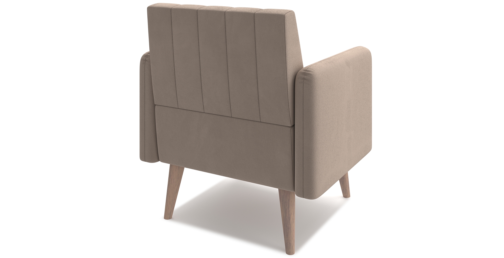 Кресло «Норман 2» выполнено в минималистском ключе. Сиденье и спинка оформлены с помощью стройного ряда параллельных прострочек на обивке, придающих визуальных ритм модели и помогающей ей лучше вписаться в геометричные каноны стиля. По бокам сиденье обрамляют аккуратные округлые подлокотники, украшенные небольшим рядом складок в районе спинки. Кресло установлено на высокие деревянные опоры, благодаря которым уборка в доме становится проще, а сама конструкция кажется более легкой. Такую модель можно поставить в любом помещении, будь то гостиная, кухня, спальня или даже прихожая.