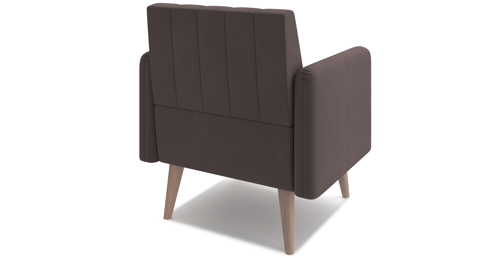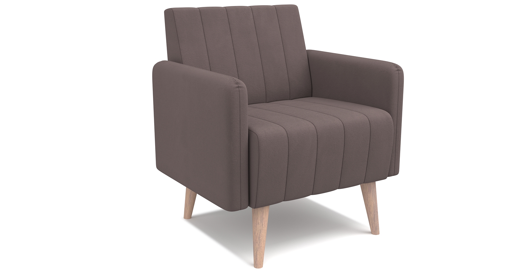 Кресло «Норман 2» выполнено в минималистском ключе. Сиденье и спинка оформлены с помощью стройного ряда параллельных прострочек на обивке, придающих визуальных ритм модели и помогающей ей лучше вписаться в геометричные каноны стиля. По бокам сиденье обрамляют аккуратные округлые подлокотники, украшенные небольшим рядом складок в районе спинки. Кресло установлено на высокие деревянные опоры, благодаря которым уборка в доме становится проще, а сама конструкция кажется более легкой. Такую модель можно поставить в любом помещении, будь то гостиная, кухня, спальня или даже прихожая.
