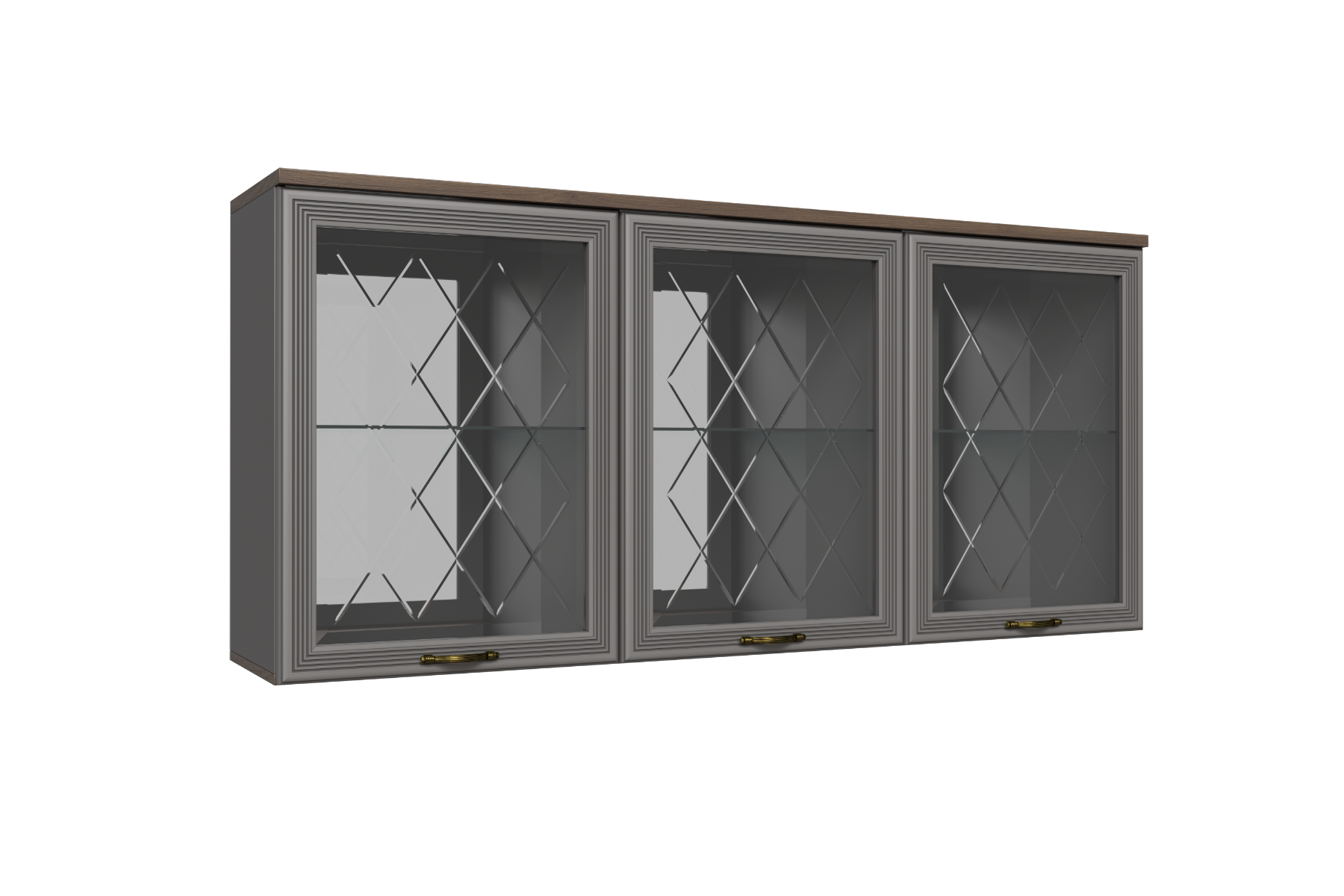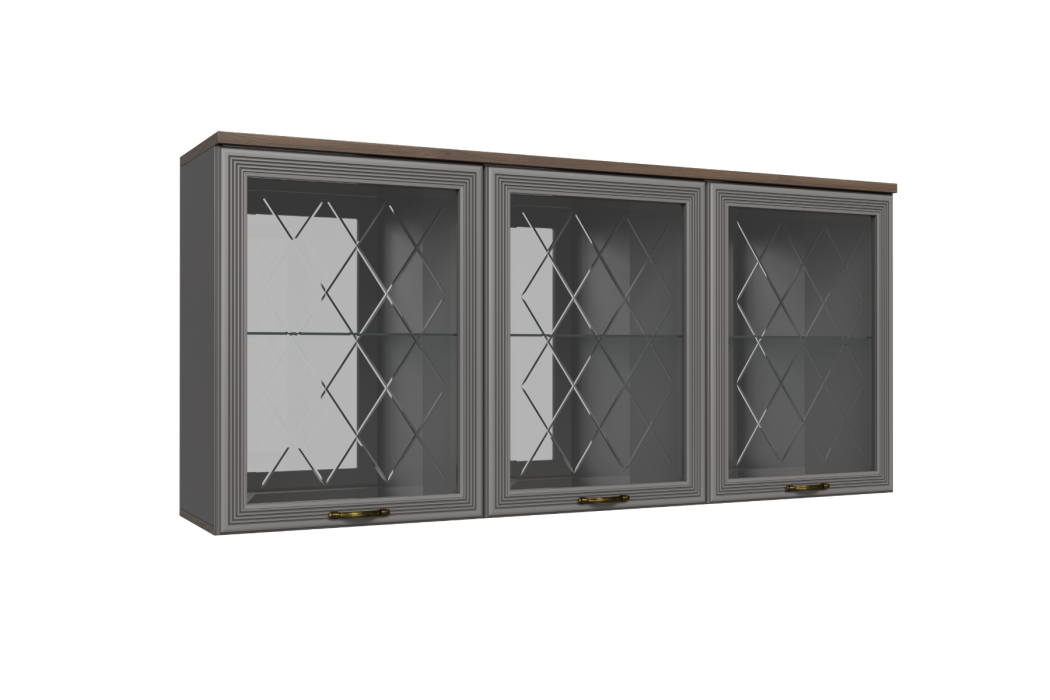 МС Карина Антресоль АН-1011 прямая навесная трехдверная со стеклом и стеклянными полками.