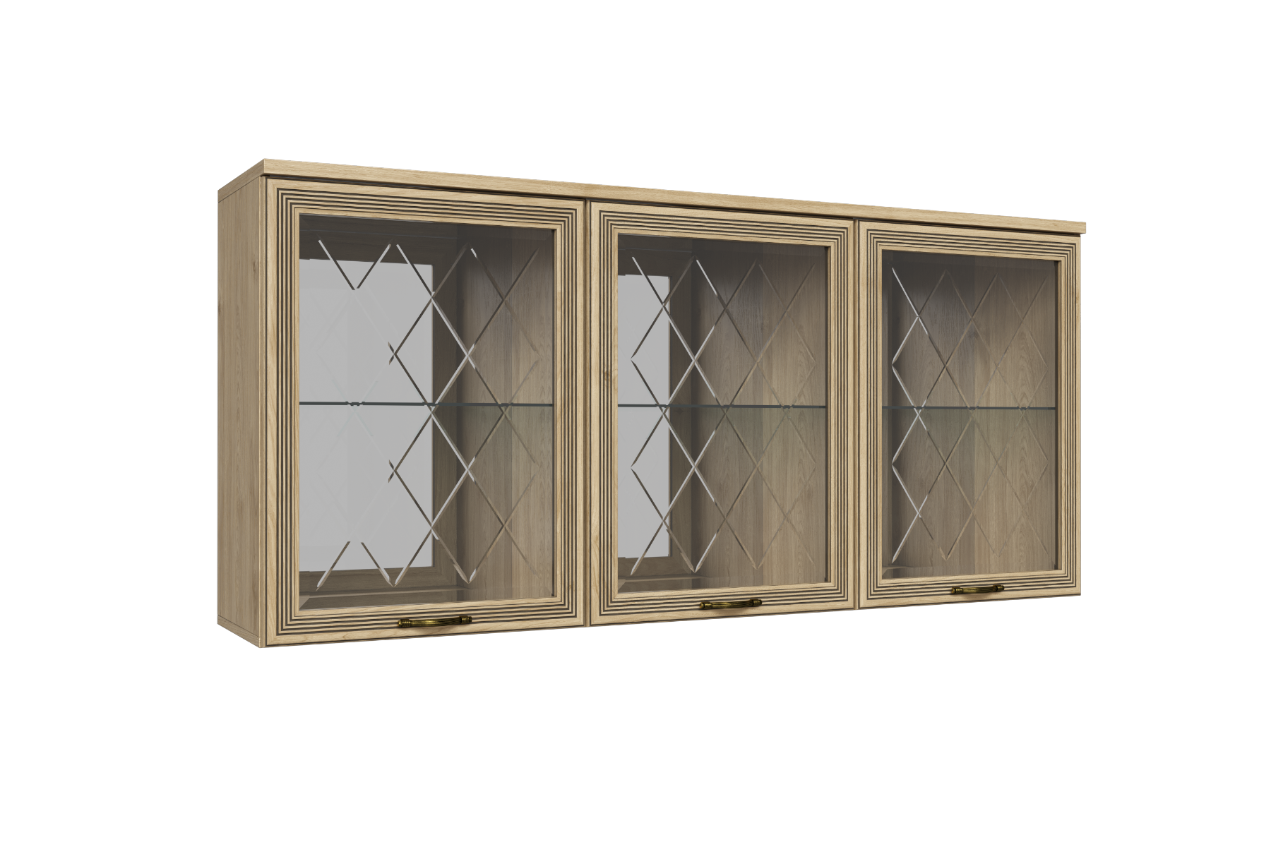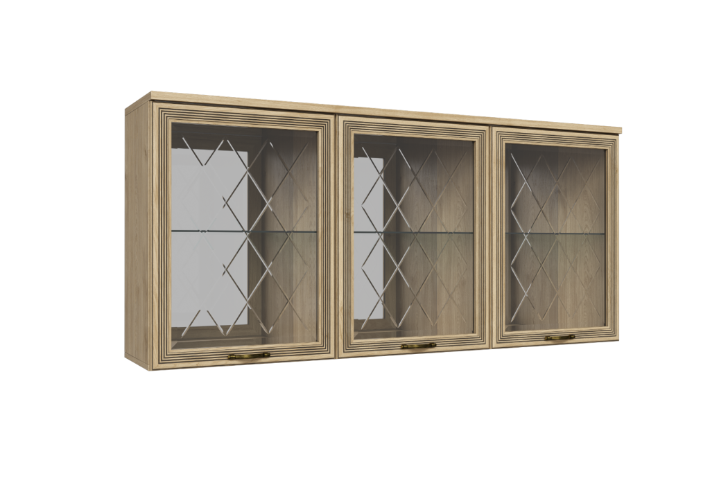 МС Карина Антресоль АН-1011 прямая навесная трехдверная со стеклом и стеклянными полками.