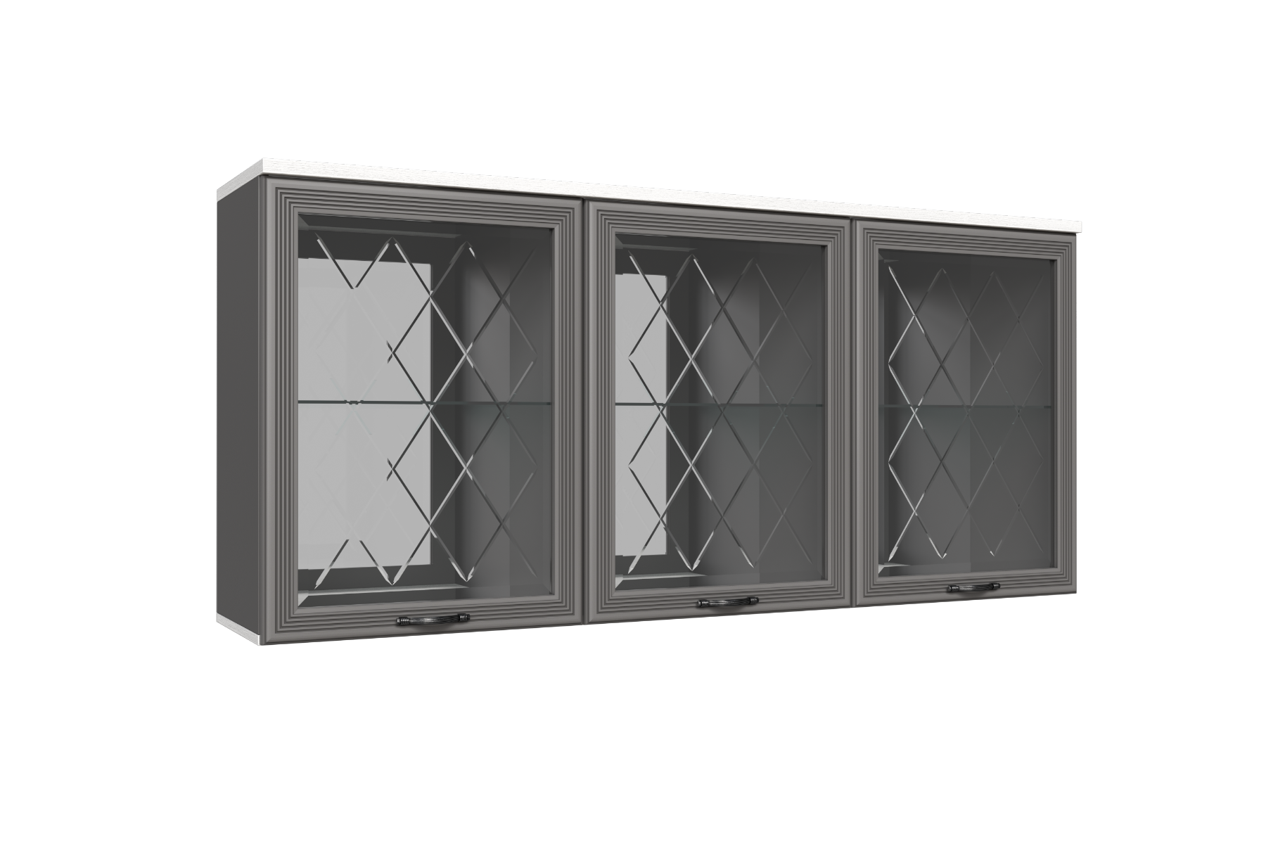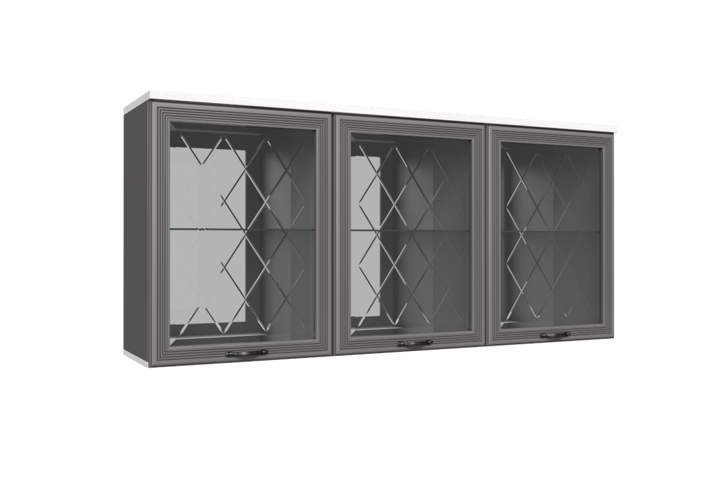 МС Карина Антресоль АН-1011 прямая навесная трехдверная со стеклом и стеклянными полками.