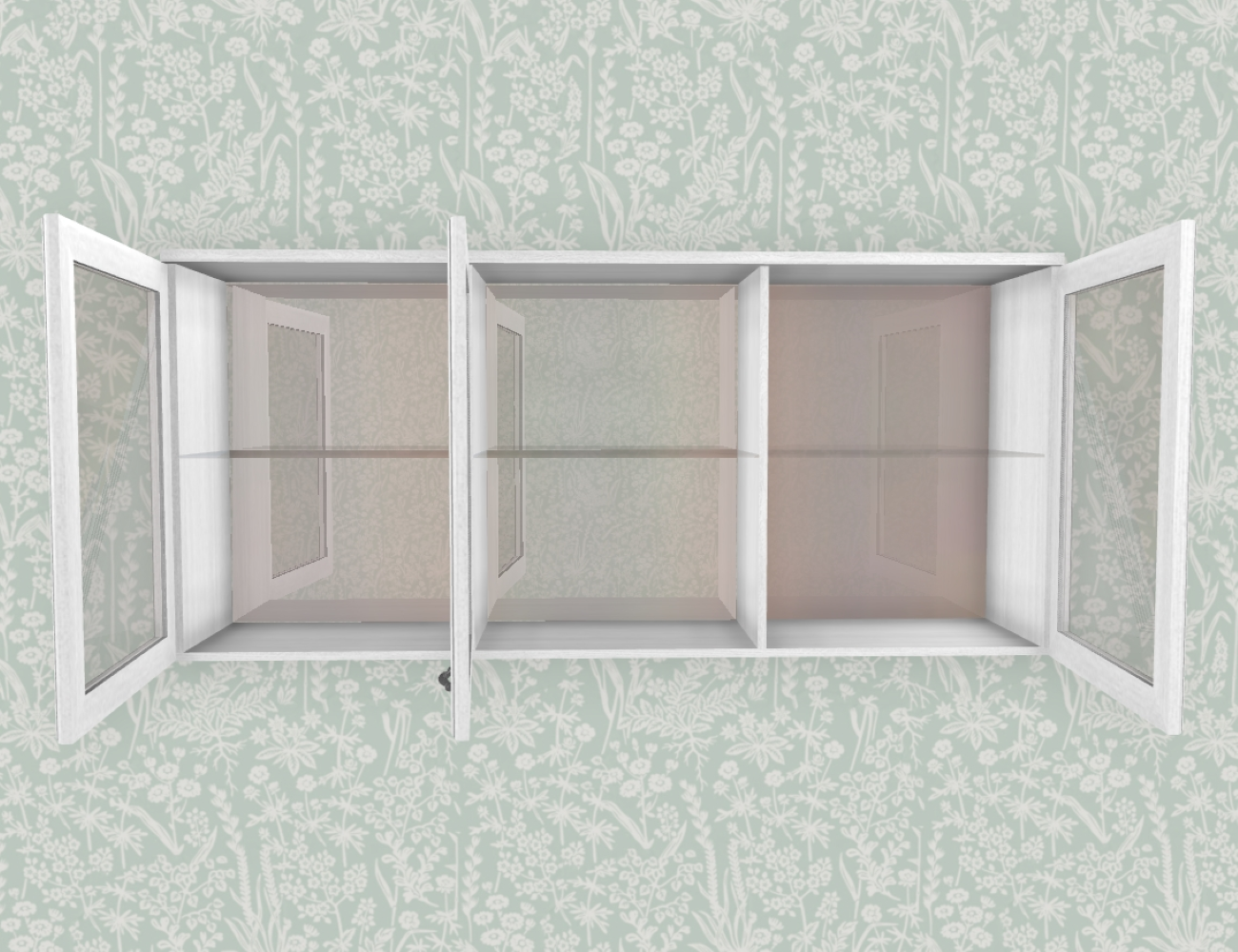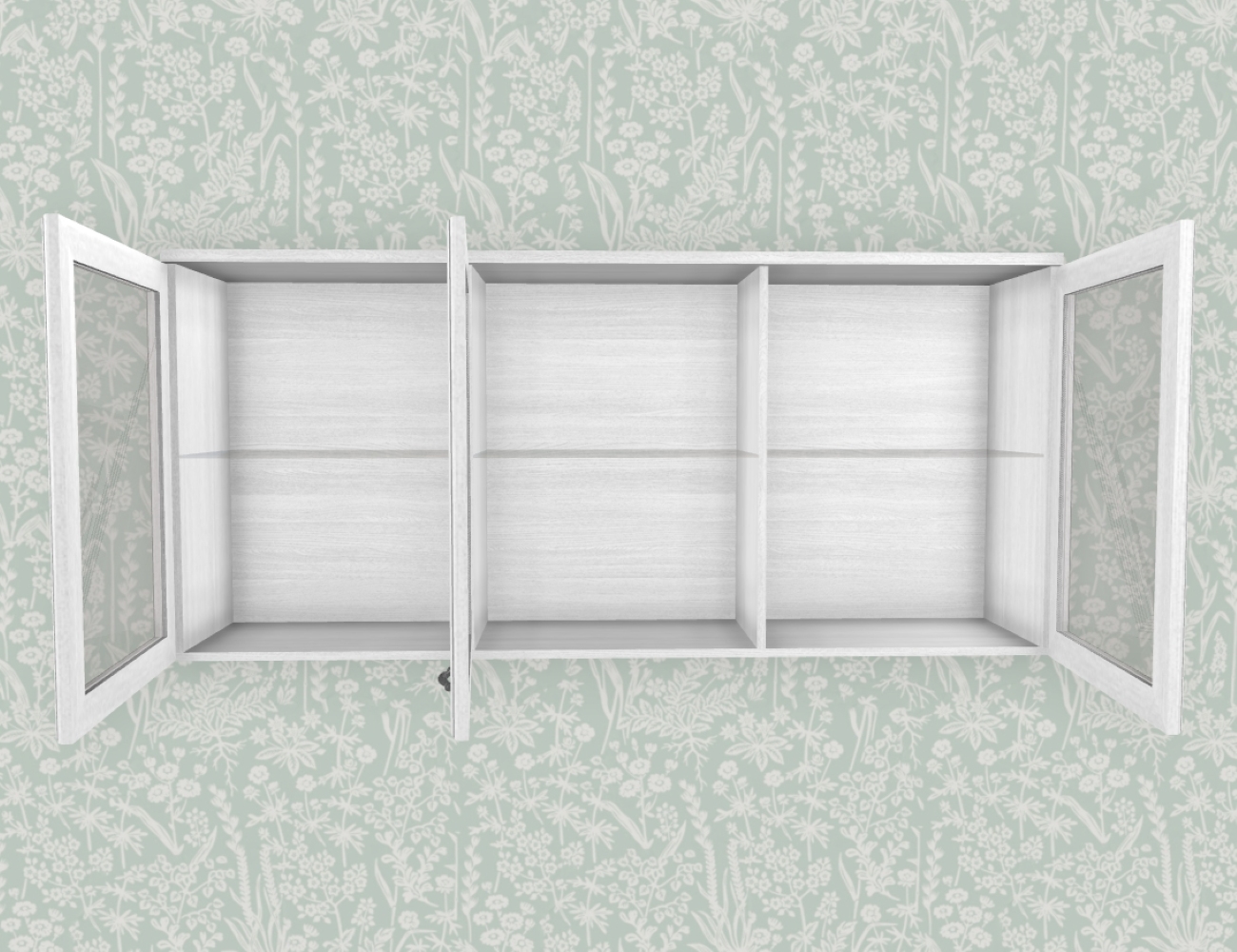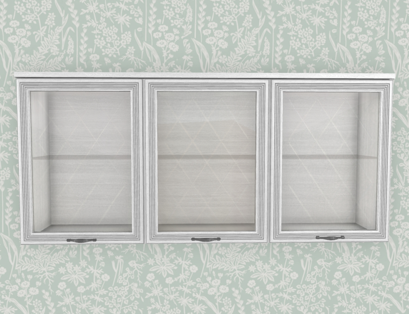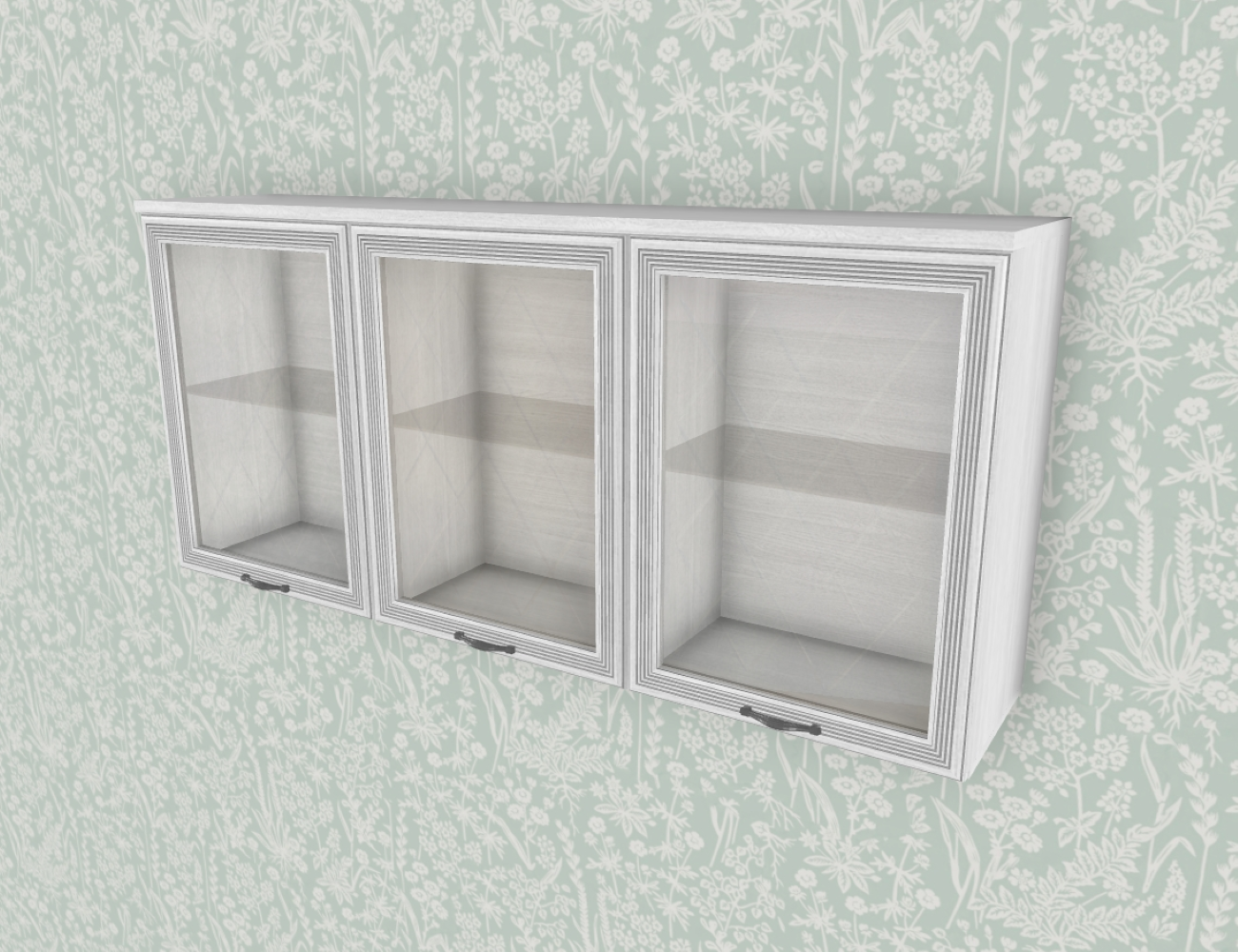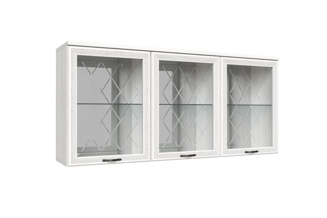 МС Карина Антресоль АН-1011 прямая навесная трехдверная со стеклом и стеклянными полками.
