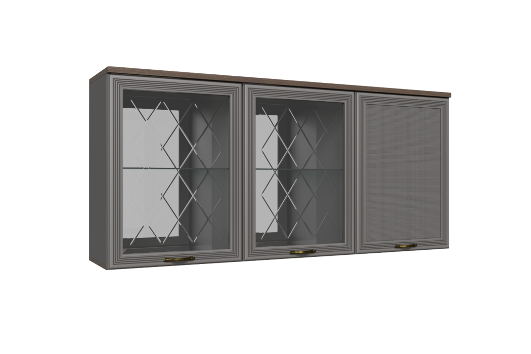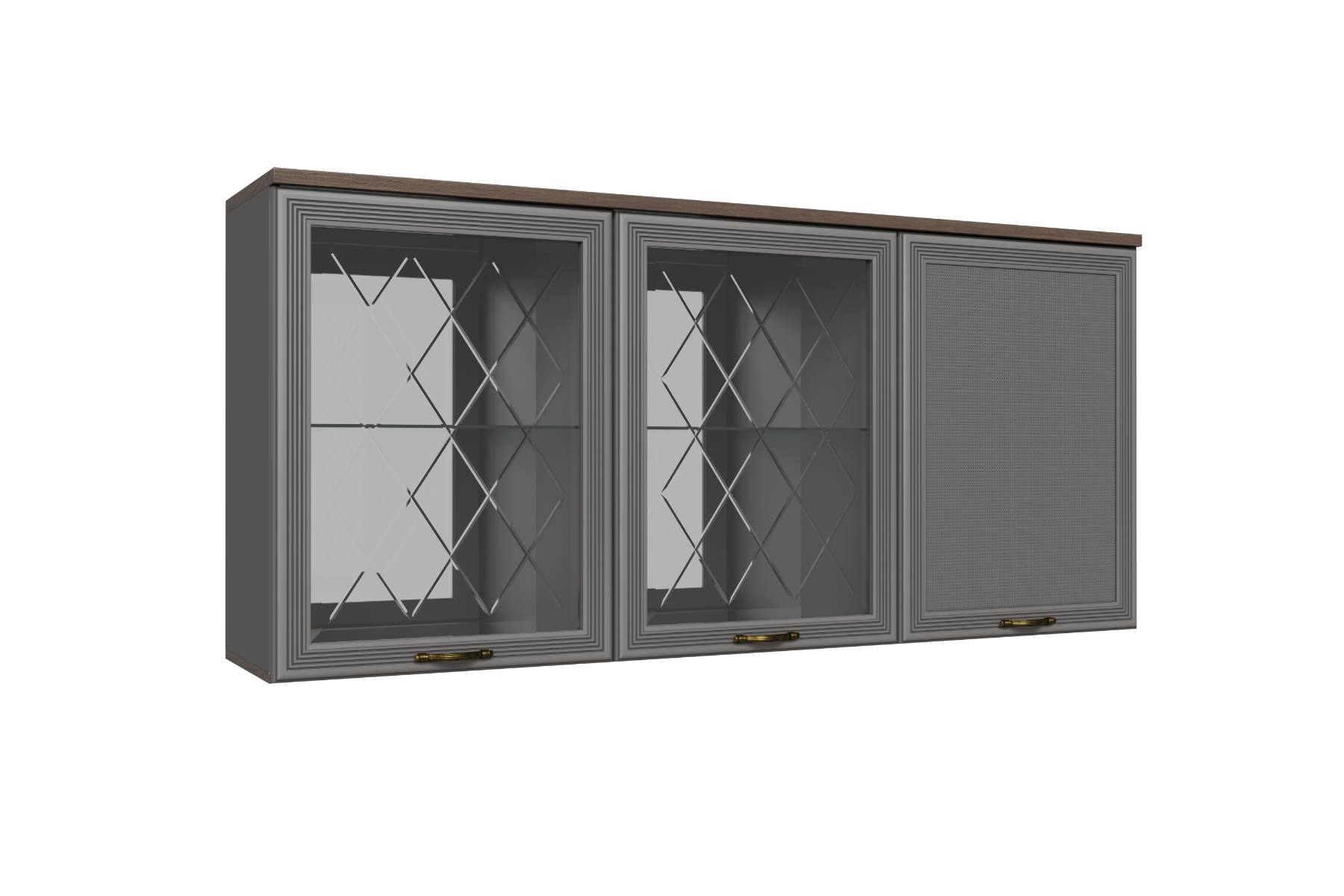 МС Карина Антресоль АН-1012 прямая навесная трехдверная со стеклом и стеклянными полками.