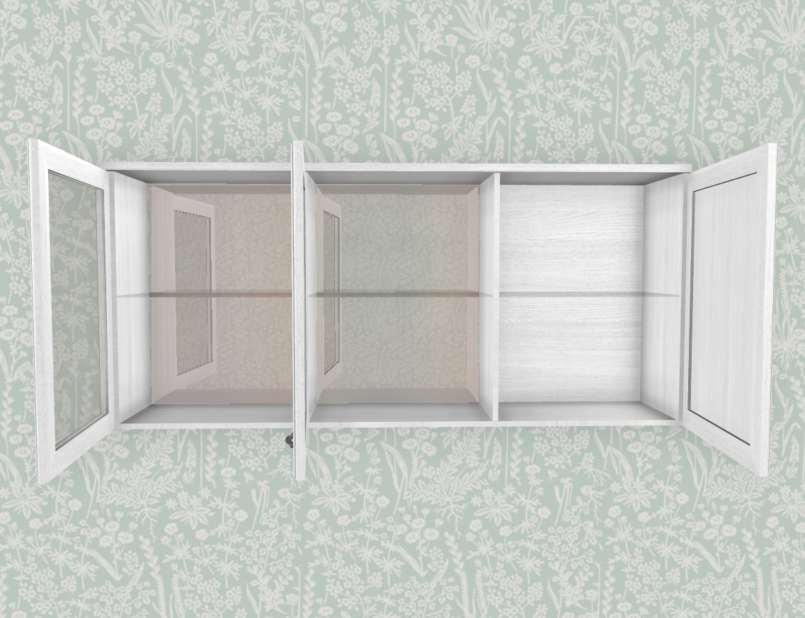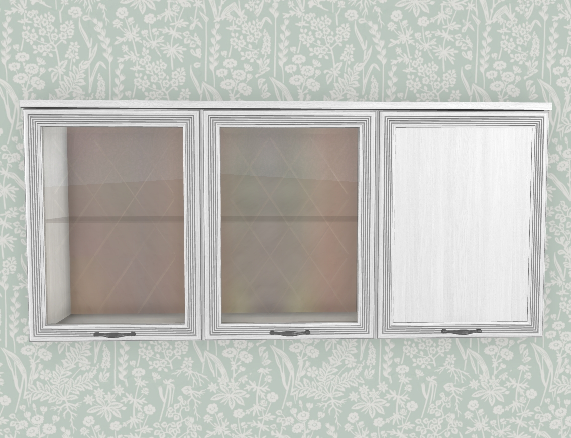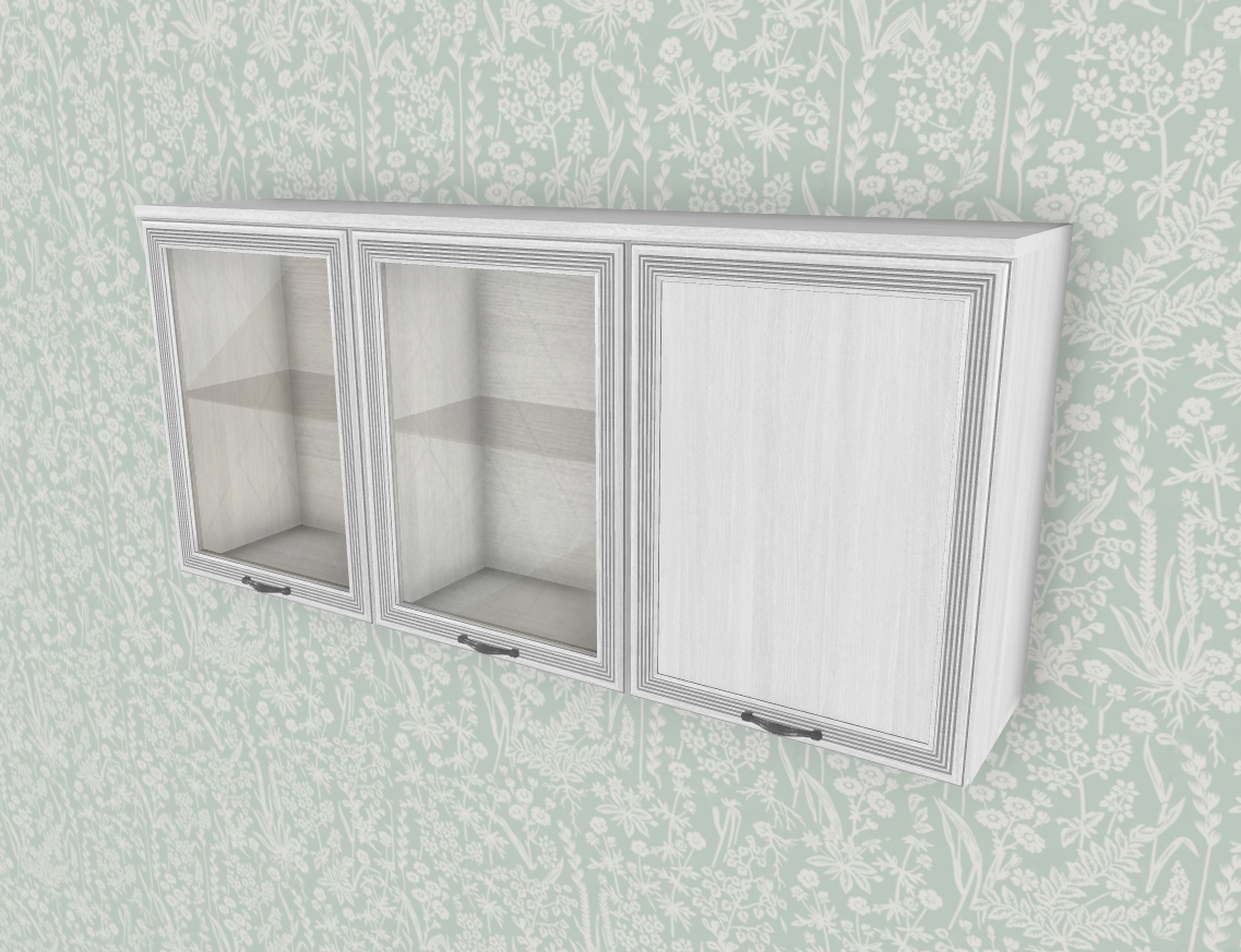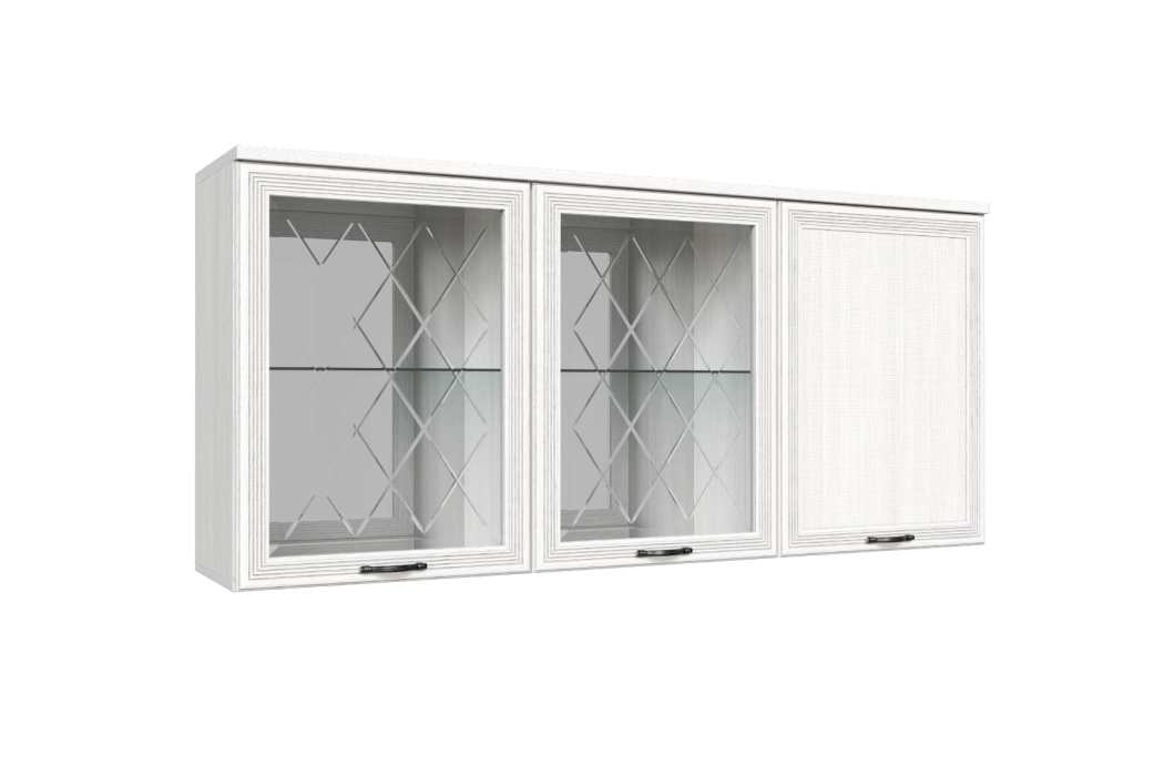 МС Карина Антресоль АН-1012 прямая навесная трехдверная со стеклом и стеклянными полками.
