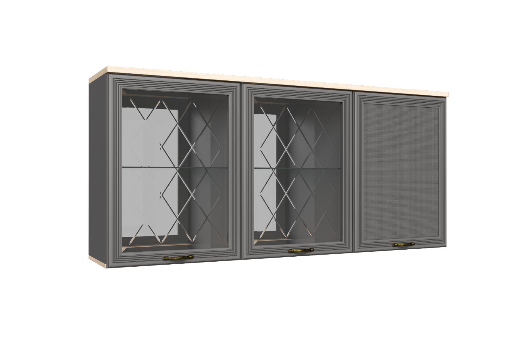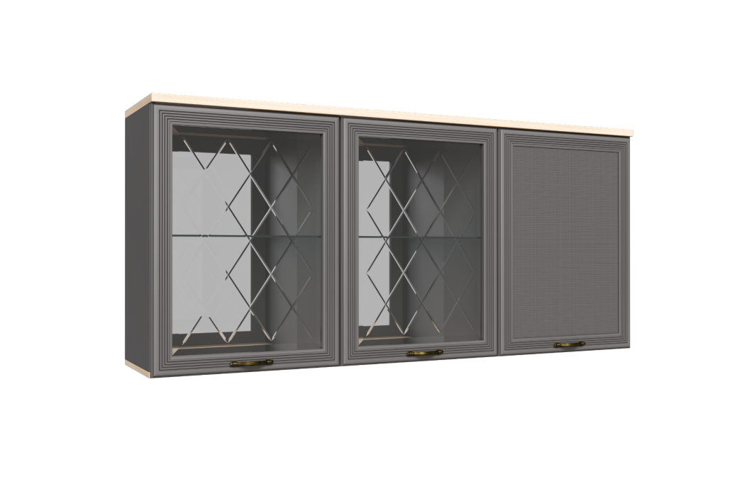 МС Карина Антресоль АН-1012 прямая навесная трехдверная со стеклом и стеклянными полками.
