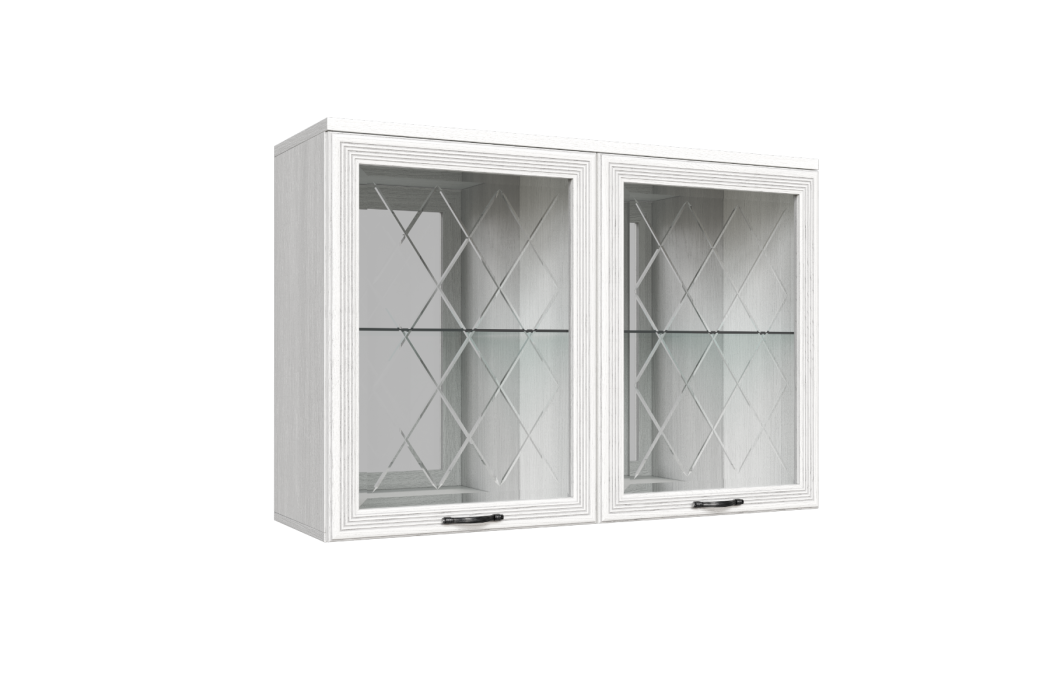 МС Карина Антресоль АН-1036 прямая навесная со стеклом и стеклянными полками.