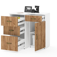 Тумба с выдвижным ящиком и дверкой идеальное решение для размещения различных мелочей, обеспечивая легкий доступ к ним. Дверь на четырехшарнирных петлях, сторону открывания Вы определяете при сборке.