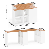 Столы-трансформеры с тумбами на четыре полки представляет собой превосходное сочетание стиля и функциональности. В комплектации 2 стола. С возможностью сборки в 2 вариантах каждого — угловом, размером 115х50/80х75 см и прямом - 165х50/30х75 см — эти столы идеально адаптируются к любому пространству и потребностям. Благодаря встроенной тумбе с четырьмя полками, столы не только предоставляют просторную рабочую поверхность, но и обеспечивают удобные места для хранения. Вы можете выбрать угловую конфигурацию для оптимального использования углов комнаты или прямой вариант для классической расстановки мебели.