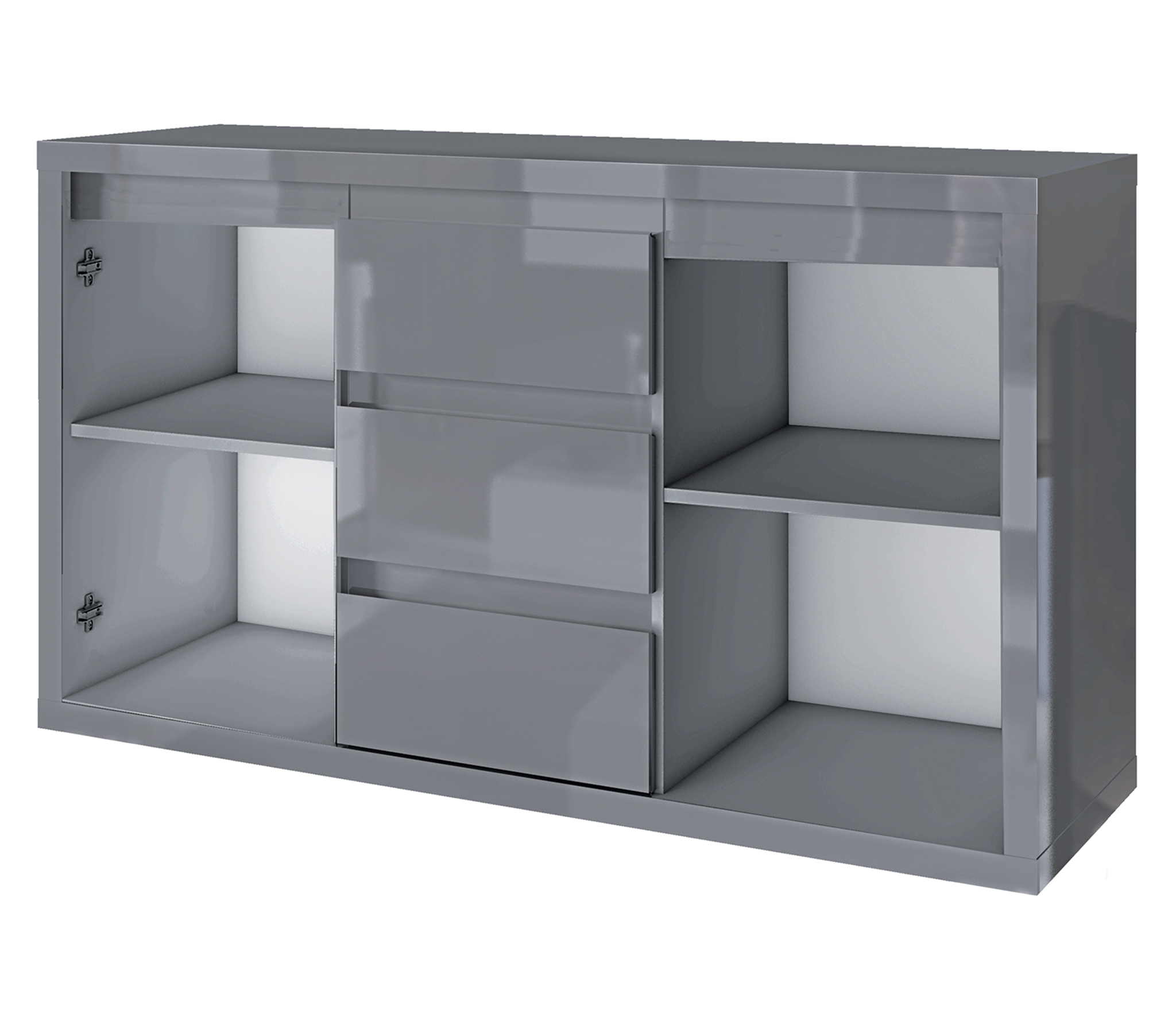 Корпус и фасады изготовлены из ламинированной древесностружечной плиты Серый Асфальт толщиной 38 и 16 мм. Торцевые поверхности закрыты кромками ABS. Экологически безопасное ЛДСП с классом эмиссии летучих веществ Е1.