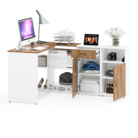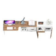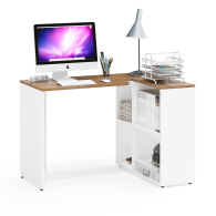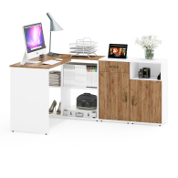Стол-трансформер с тумбой на четыре полки представляет собой превосходное сочетание стиля и функциональности. С возможностью сборки в 2 вариантах — угловом, размером 115х50/80х75 см и прямом - 165х50/30х75 см — этот стол идеально адаптируется к любому пространству и потребностям. Благодаря встроенной тумбе с четырьмя полками, стол-трансформер не только предоставляет просторную рабочую поверхность, но и обеспечивает удобное место для хранения. Вы можете выбрать угловую конфигурацию для оптимального использования углов комнаты или прямой вариант для классической расстановки мебели.