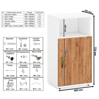 Тумба с выдвижным ящиком и дверкой идеальное решение для размещения различных мелочей, обеспечивая легкий доступ к ним. Двери на четырехшарнирных петлях, сторону открывания вы определяете при сборке. Ящик оснащен шариковыми направляющими неполного выдвижения.