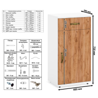 Мебель выполнена из ЛДСП 16 мм, что придаёт ей прочность и долговечность. Все детали обработаны кромкой из ПВХ. В качестве фурнитуры используются ручки-скобы 110 мм в цвете Античная бронза. Пластиковые подпятники позволяют легко выровнять мебель. Поставляется в разобранном виде в упаковке.