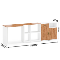 Тумба предоставляет дополнительное пространство для хранения, что особенно ценно в небольших комнатах. Тумба оборудована открытой нишей сверху и отделением с полкой за распашной дверкой. Стол-трансформер не имеет универсальной сборки - тумба расположена справа, угол справа.