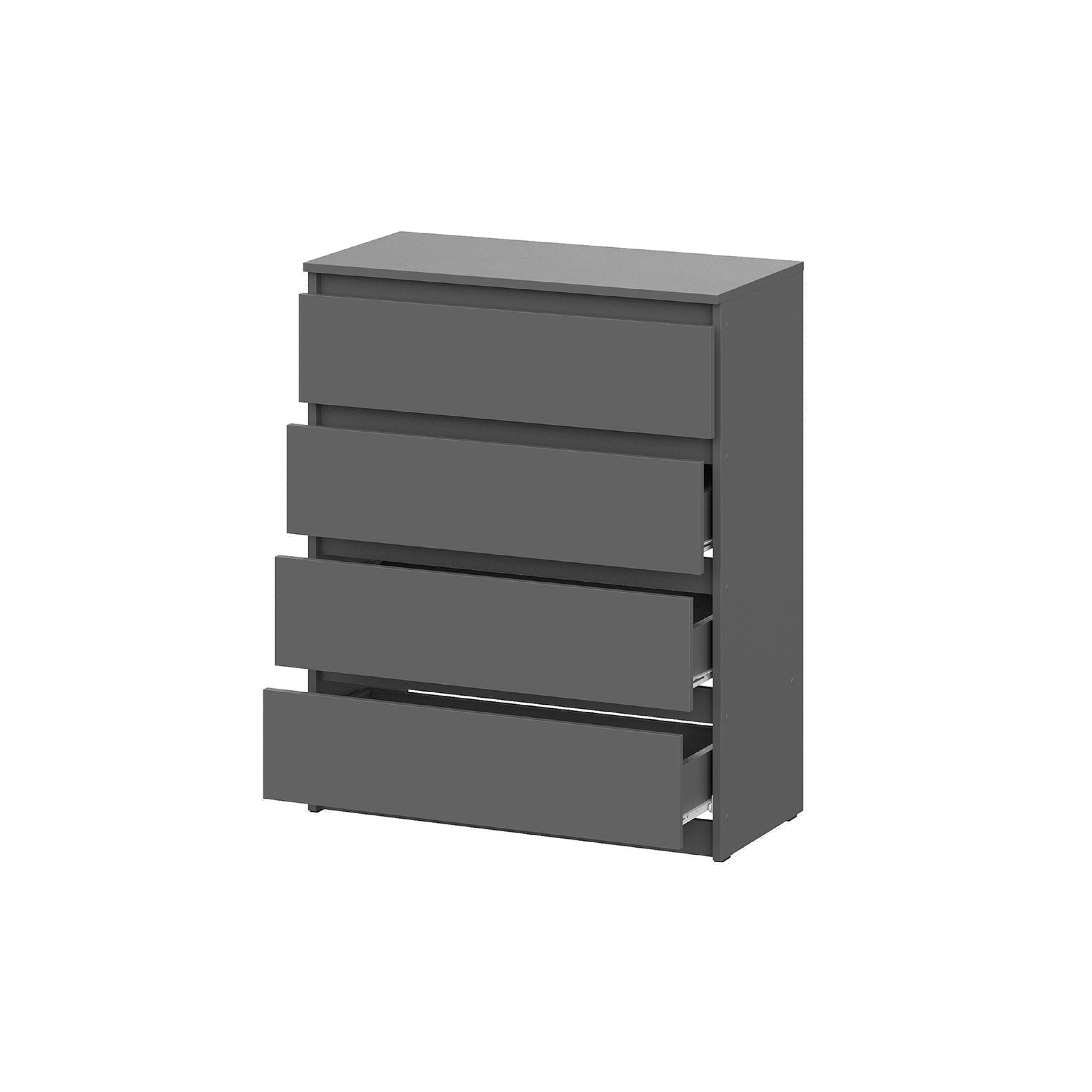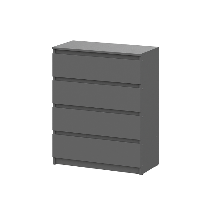Четыре вместительных ящика обеспечивают достаточно места для хранения различных вещей. Каждое отделение легко открывается благодаря выступающим торцам, что не только добавляет удобства, но и поддерживает общий стиль комода. Размеры ящиков позволяют разместить в них не только белье и одежду, но и аксессуары, документы и другие мелочи, которые должны быть всегда под рукой. Роликовые направляющие обеспечивают плавное и бесшумное выдвижение ящиков, что делает использование комода еще более комфортным.
