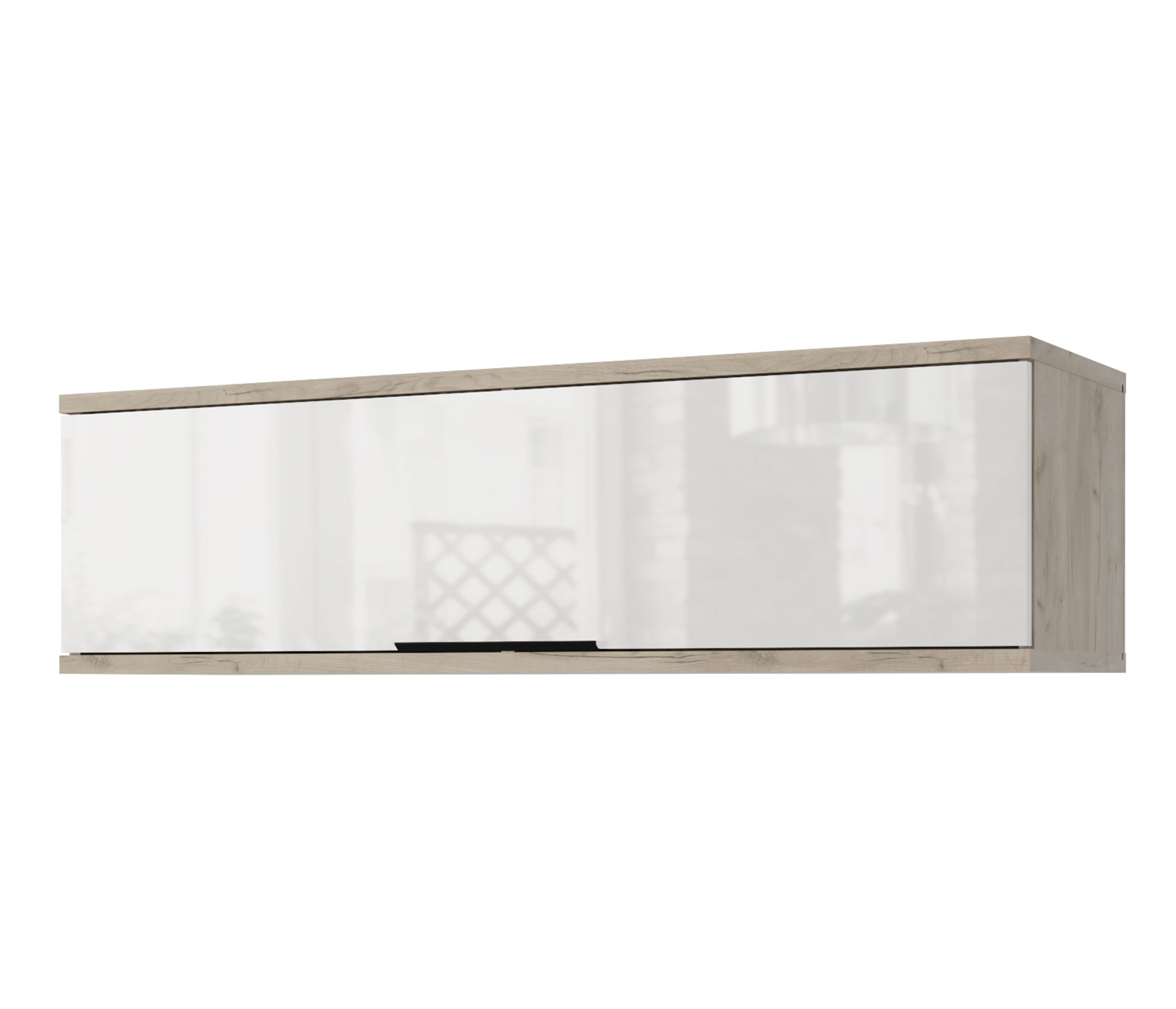 В навесных полках с фасадом установлены системы открывания газ-лифт.