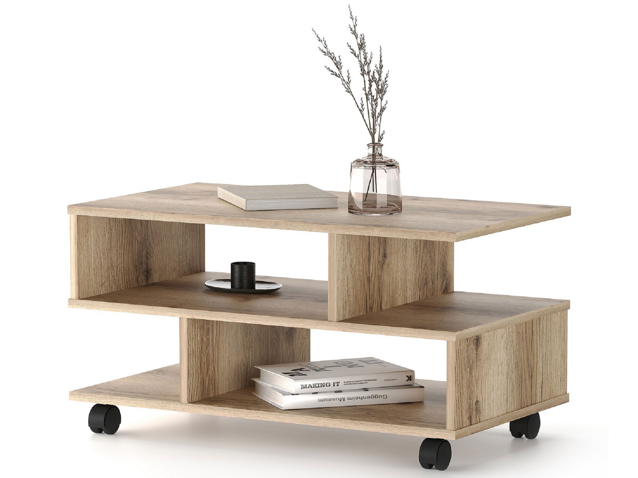 Журнальный столик СЖ-6 - очень удобная и компактная модель, которая отлично впишется в вашу гостиную. Открытые ниши можно использовать для хранения различных мелочей. Для удобства перемещения столик оборудован колесиками.
