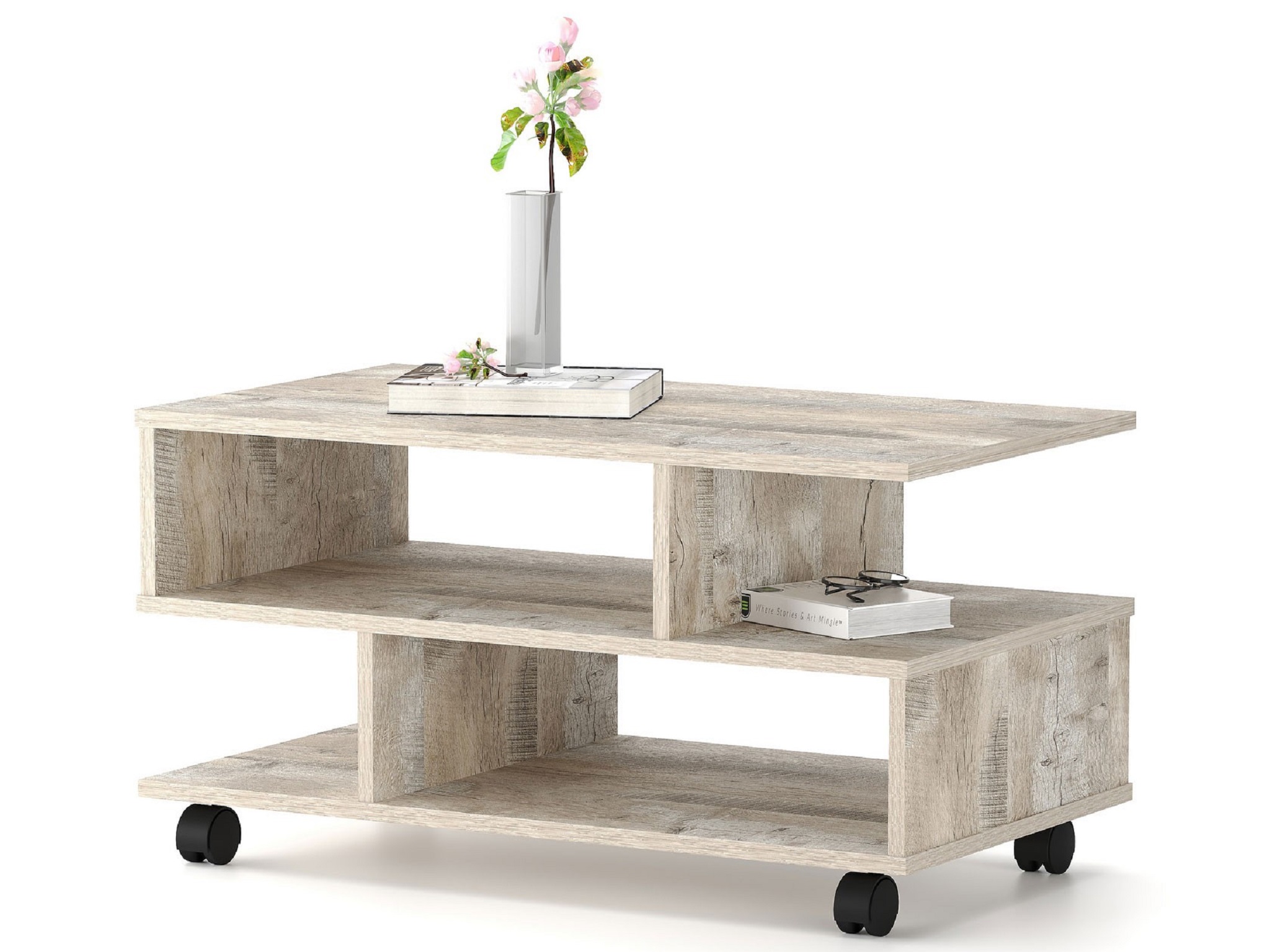 Журнальный столик СЖ-6 - очень удобная и компактная модель, которая отлично впишется в вашу гостиную. Открытые ниши можно использовать для хранения различных мелочей. Для удобства перемещения столик оборудован колесиками.