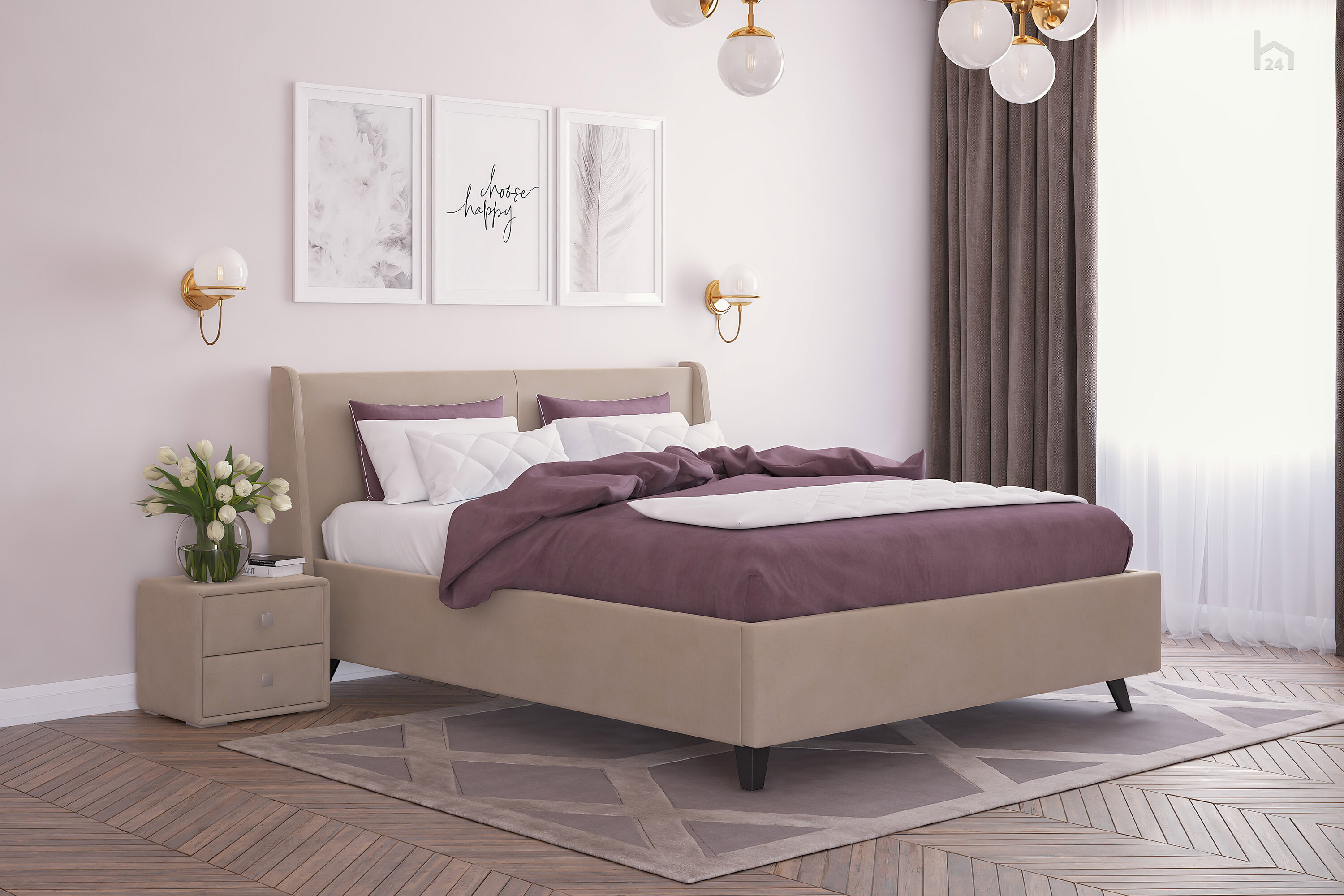 Кровать Лорен, 180*200, микровелюр бежевый                                        Код R0000293398