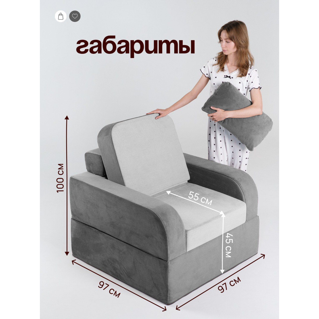Ш 97 X В 100 X Г 97 см