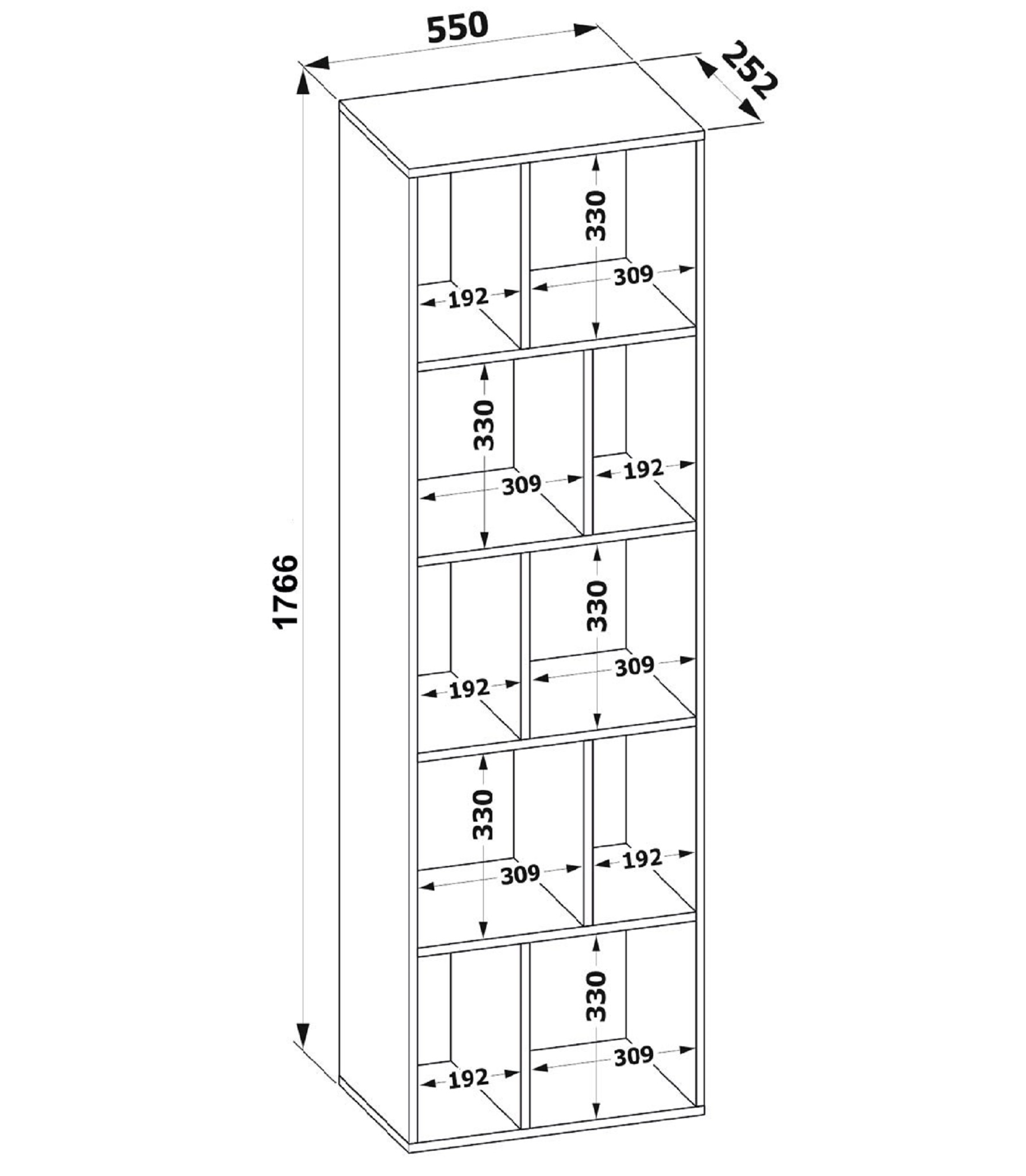 Размер стеллажа: В-1766 мм, Ш-550 мм, Г-252 мм.