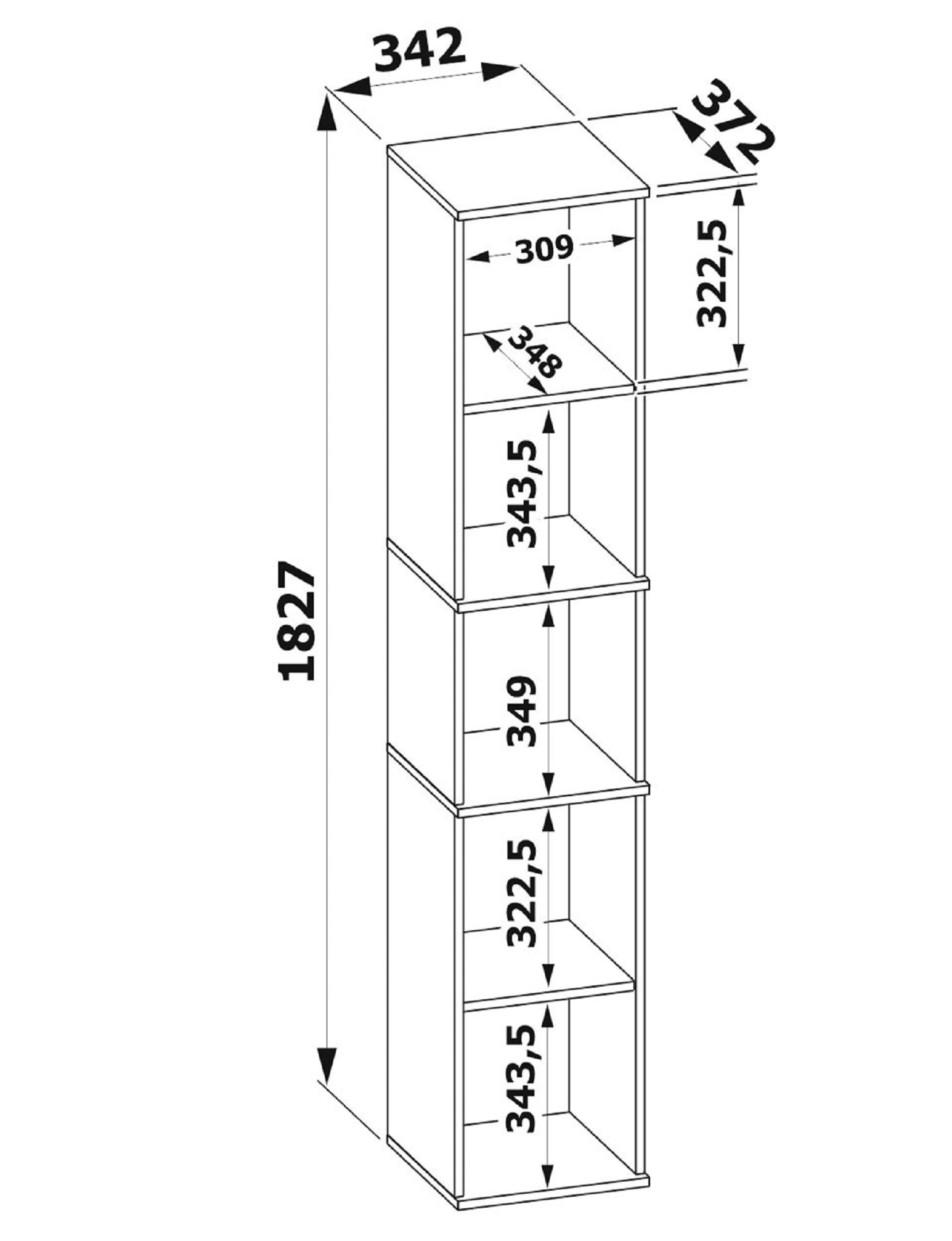 Размер стеллажа: В-1827 мм., Ш-342 мм., Г-372 мм.