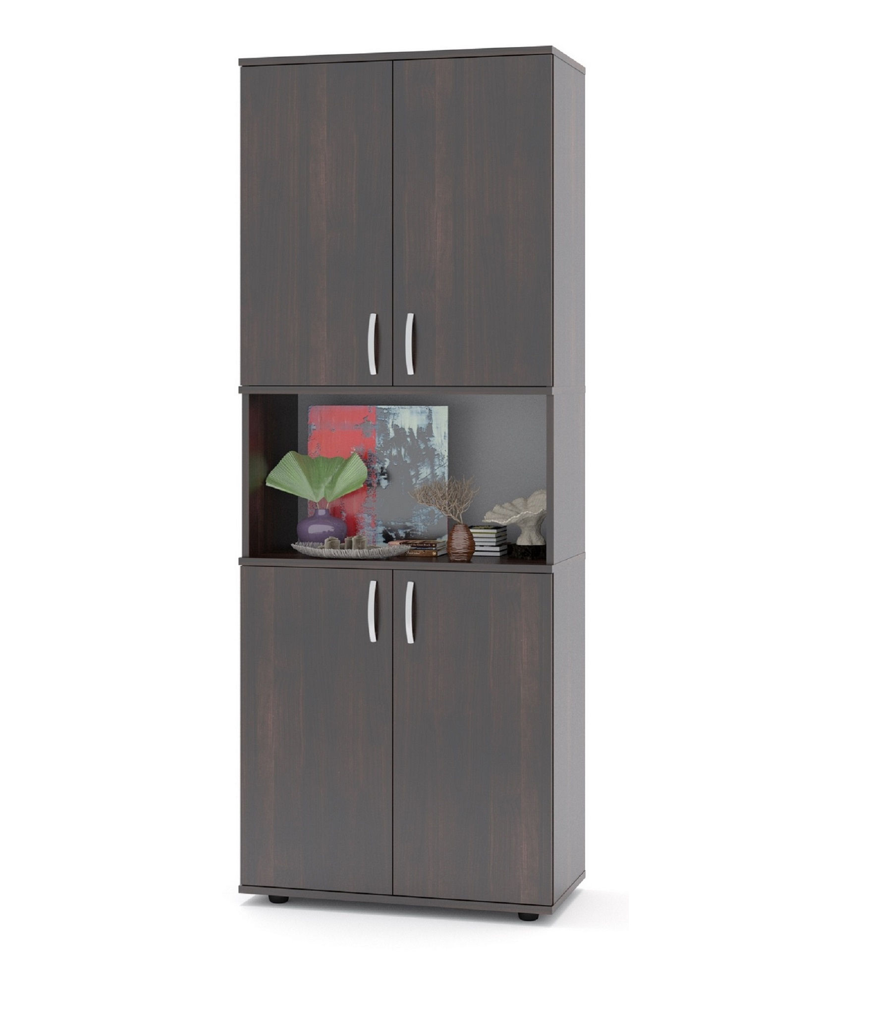 Стеллаж ШУ-22 комбинированный: с открытой полкой и закрытыми за дверцами. Полки стеллажа распашные, снизу и сверху. Дверцы стеллажа предотвратят попадание пыли и солнечного света внутрь закрытого пространства.
