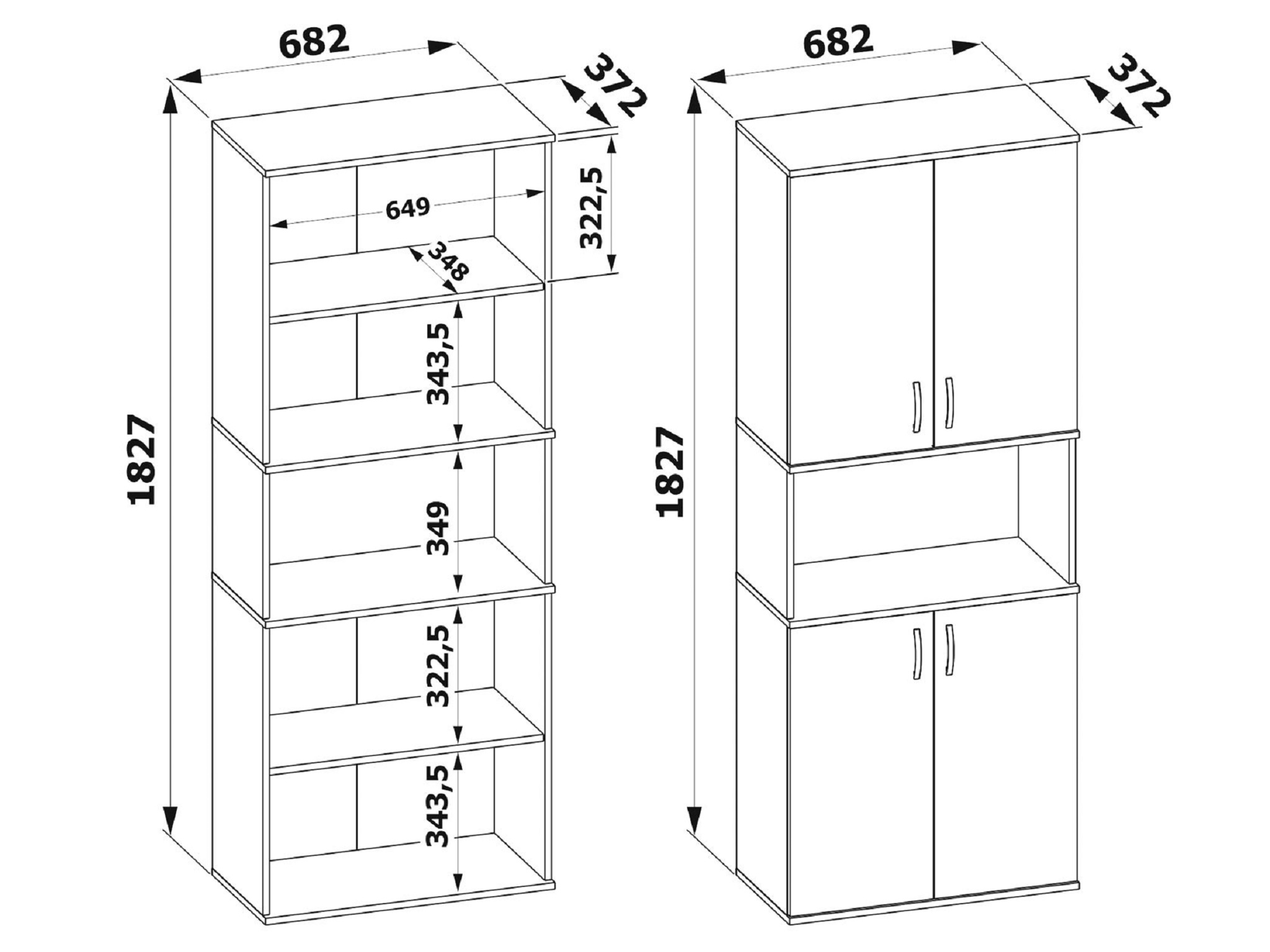 Размер стеллажа: В-1827 мм, Ш-682 мм, Г-372 мм.