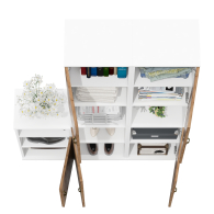 Пеналы идеально подходят для хранения книг, документов или декоративных элементов, создавая аккуратный и стильный вид. Каждый пенал оборудован сверху и снизу распашными дверками и открытой нишей между ними. В комплектации 2 пенала.