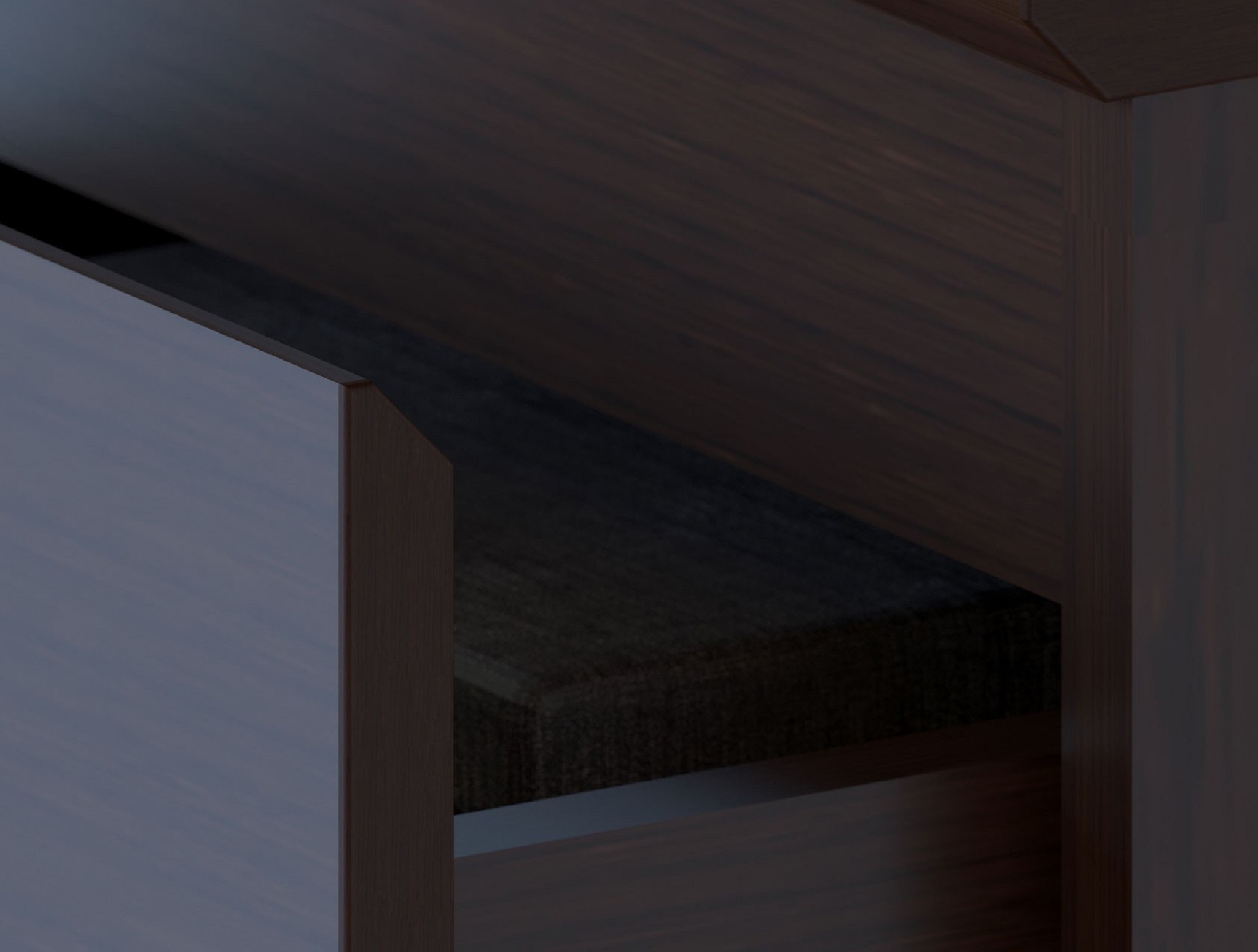 Особенностью комода Т-2Р является открывание ящиков без ручек, благодаря спилу под 45° в верхней части фасадов.