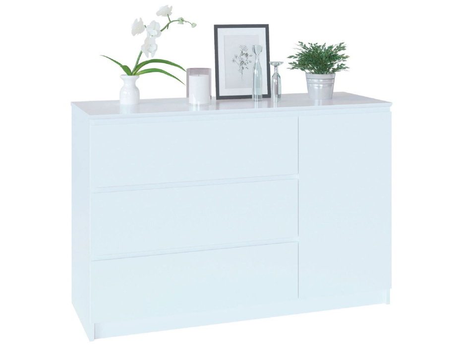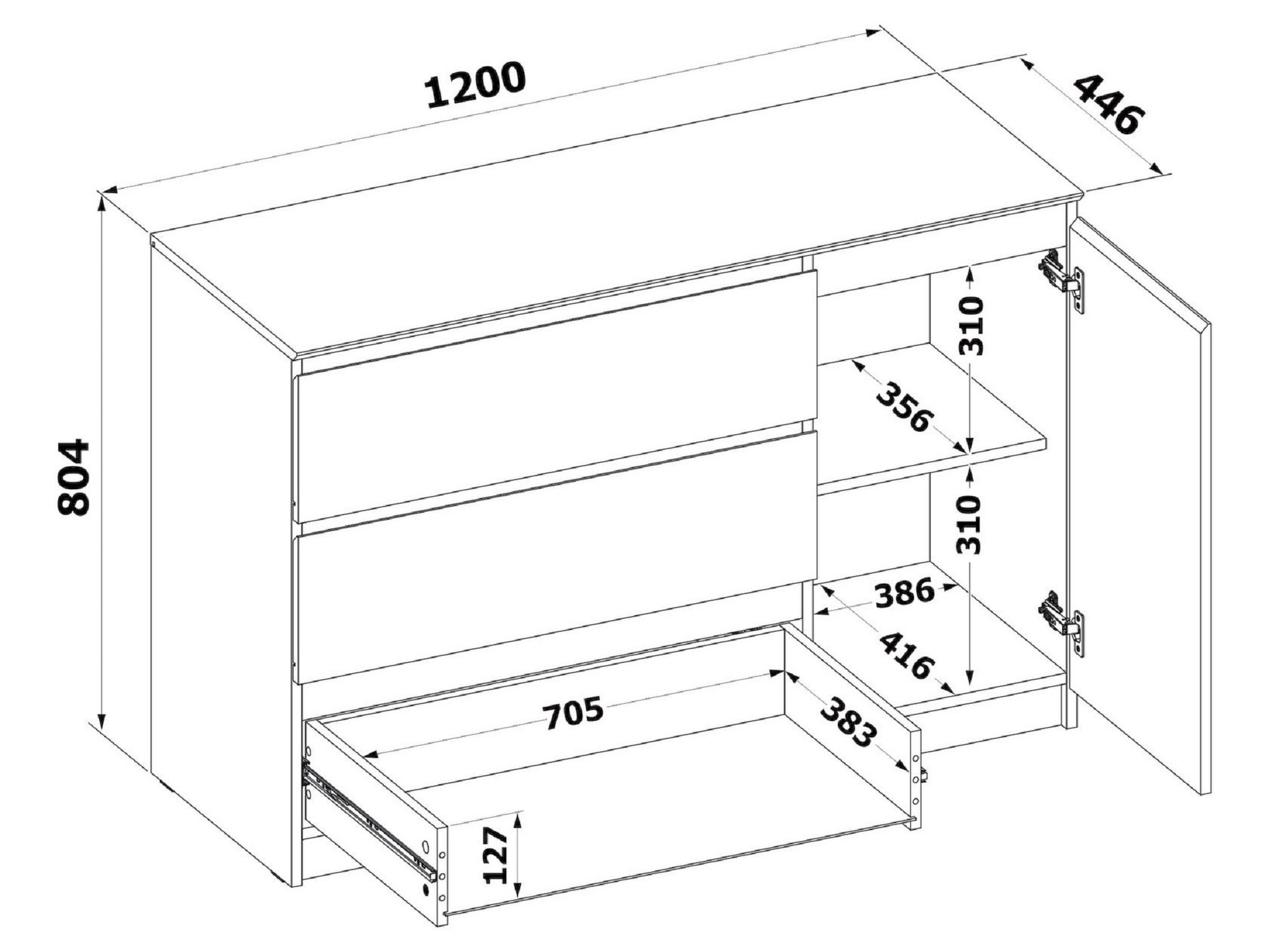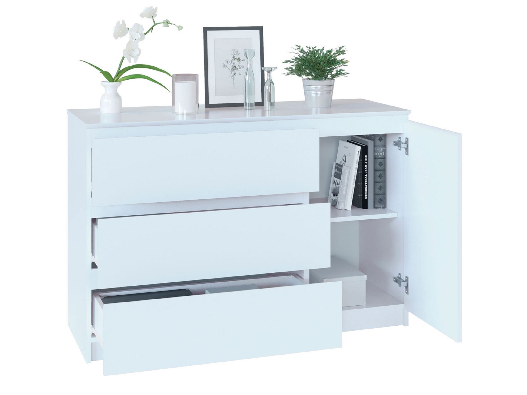 Три вместительных выдвижных ящика дополнены распашным отделением с полочкой.
