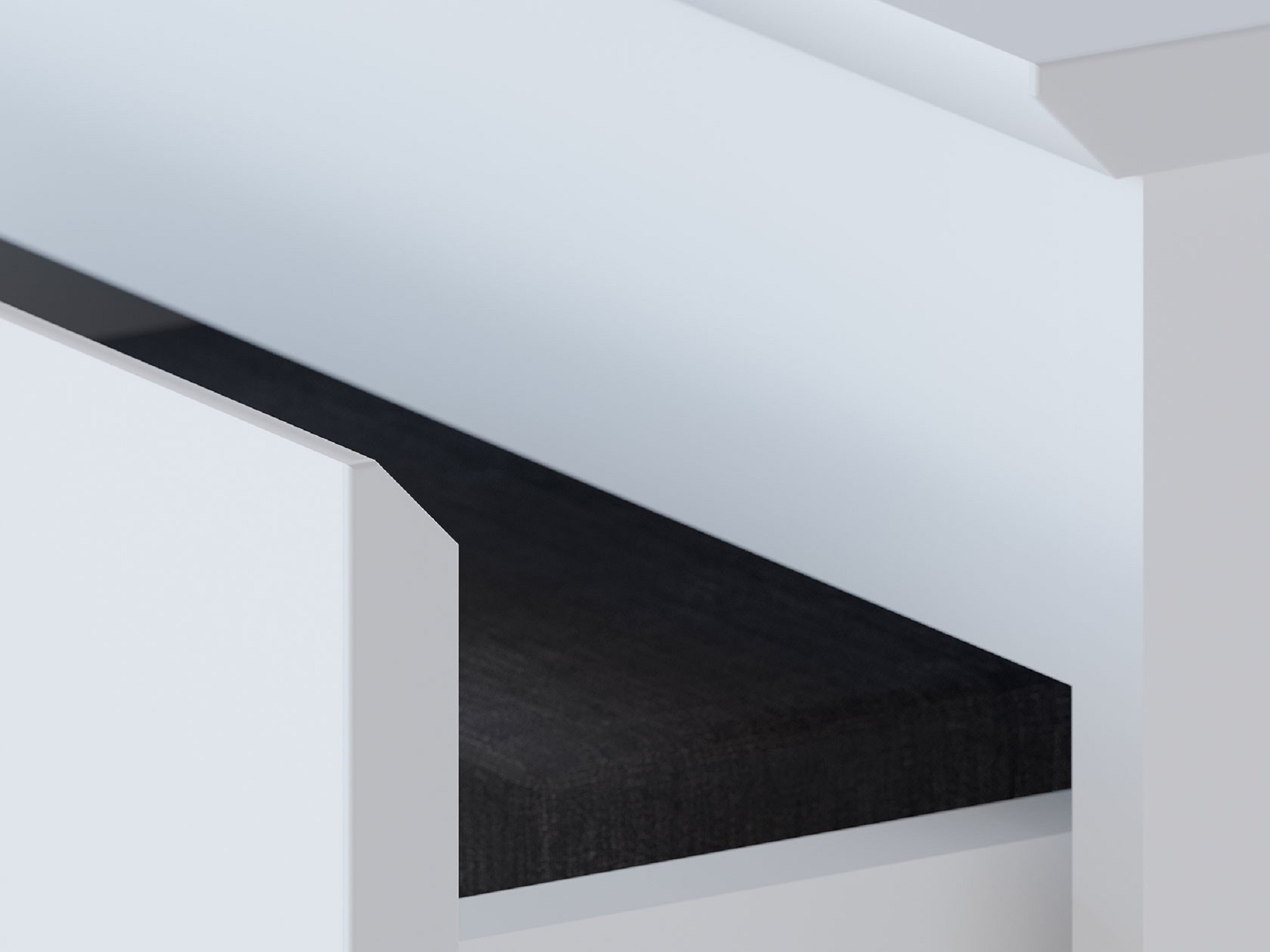 Широкий современный комод из высококачественных материалов подойдет для любой комнаты. Особенностью комода Т-3Р является открывание ящиков без ручек, благодаря спилу под 45° в верхней части фасадов.