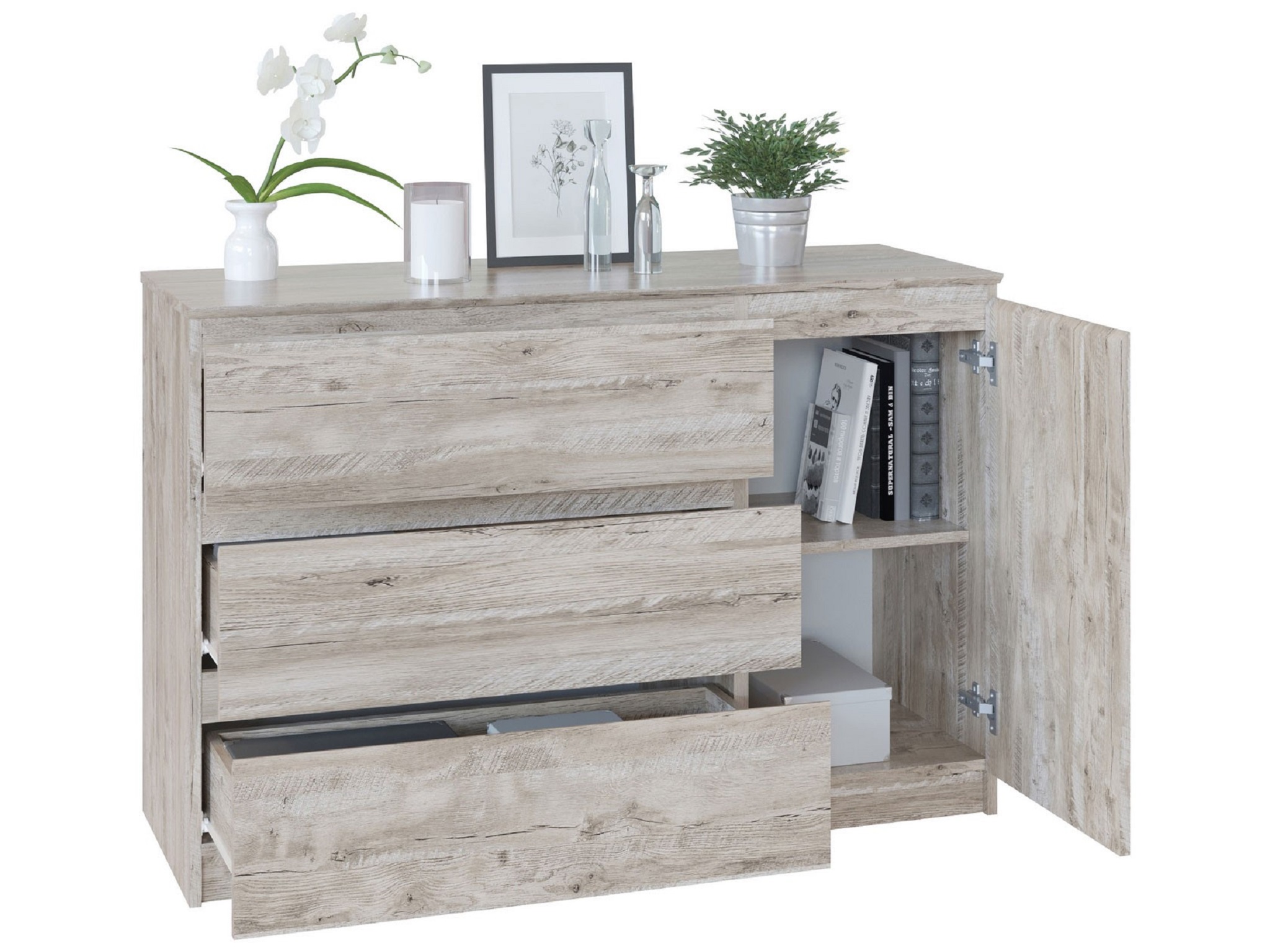 Три вместительных выдвижных ящика дополнены распашным отделением с полочкой.