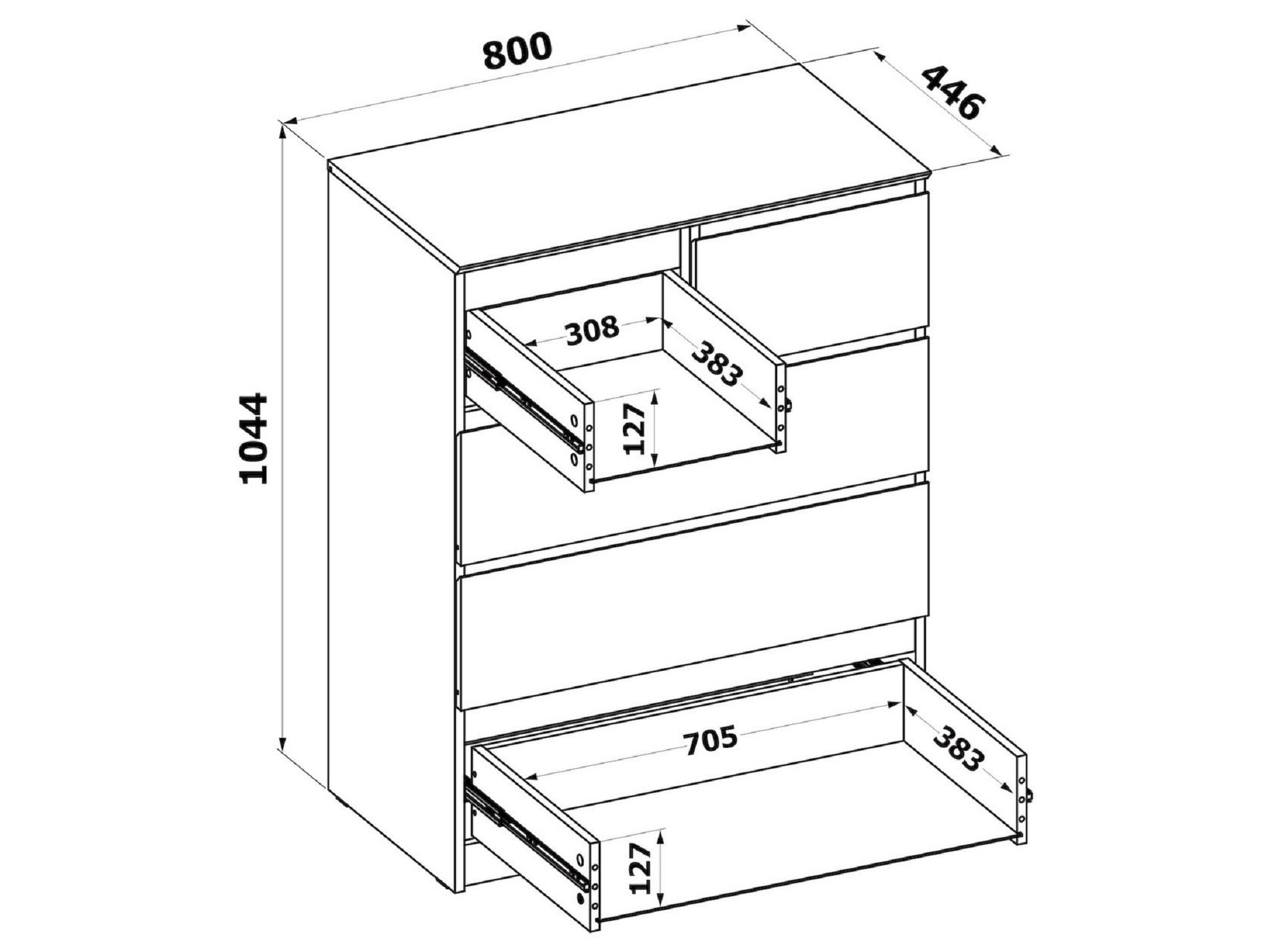Для изготовления комода используется ЛДСП толщиной 16 мм.