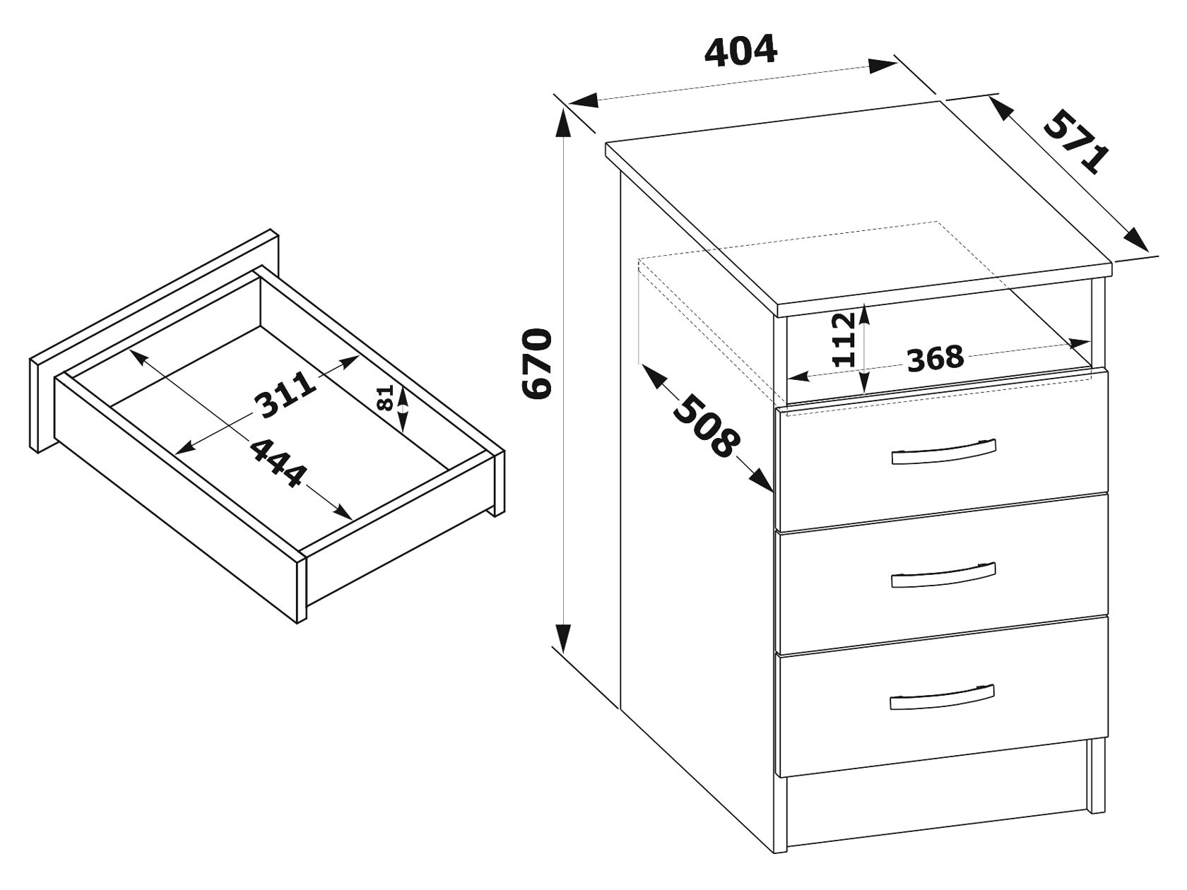 Размер тумбы: В-670 мм, Ш-404 мм, Г-571 мм.