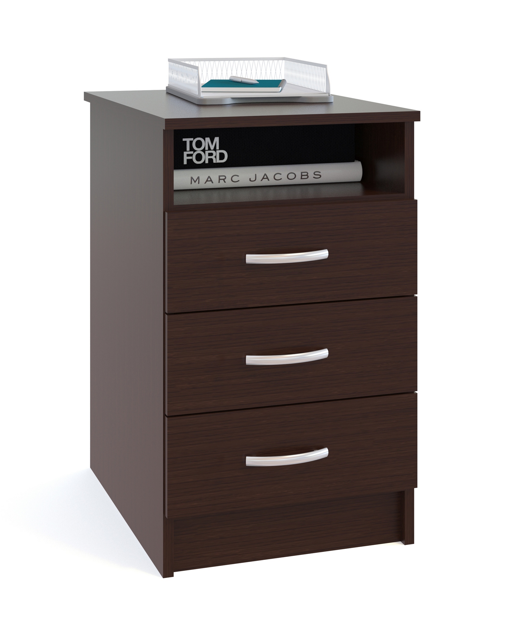 Тумба имеет открытую нишу и три выдвижных ящика для канцелярских принадлежностей.