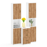 Пеналы идеально подходят для хранения книг, документов или декоративных элементов, создавая аккуратный и стильный вид. Каждый пенал оборудован сверху и снизу распашными дверками и открытой нишей между ними. В комплектации 2 пенала. Двери на четырехшарнирных петлях, сторону открывания вы определяете при сборке.